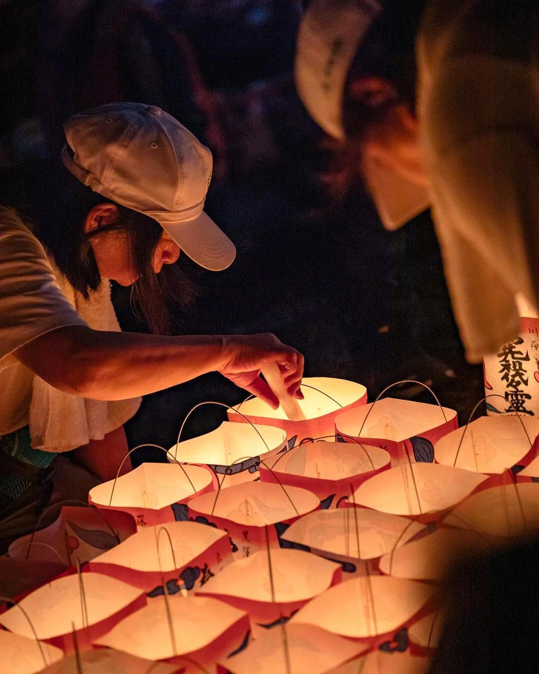 这场活动不仅是人们寄托心愿的方式,也是京都著名的“五山送火”仪式之一。当晚,游客不仅可以欣赏到漂浮在水面上的点点烛光,还能远眺山上的大文字送火,以及近处鸟居形式的送火。这三种不同形式的火光相互辉映,仿佛让人置身于一个幽玄的世界。