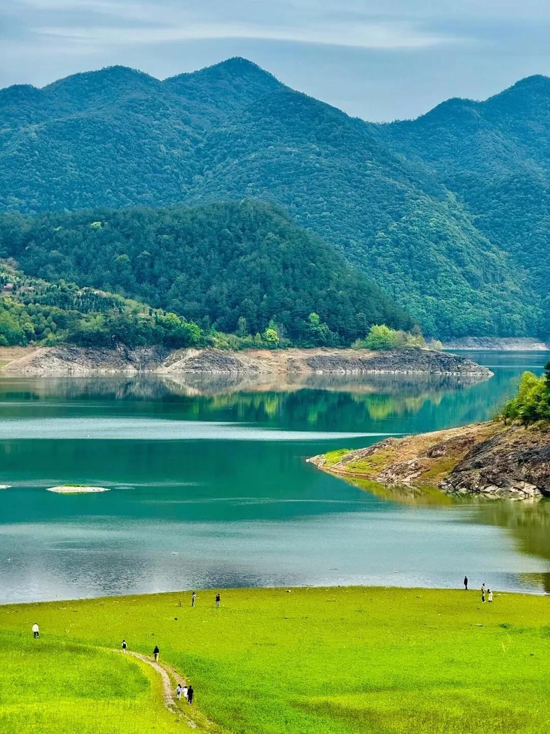 岙底村则是群山环抱中的一颗翡翠,湖光山色交相辉映。这里有大片的草地和悠然吃草的牛羊,是拍照的好去处。