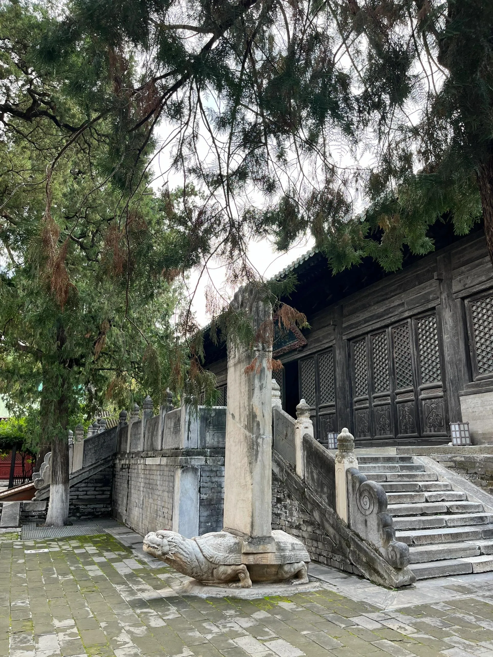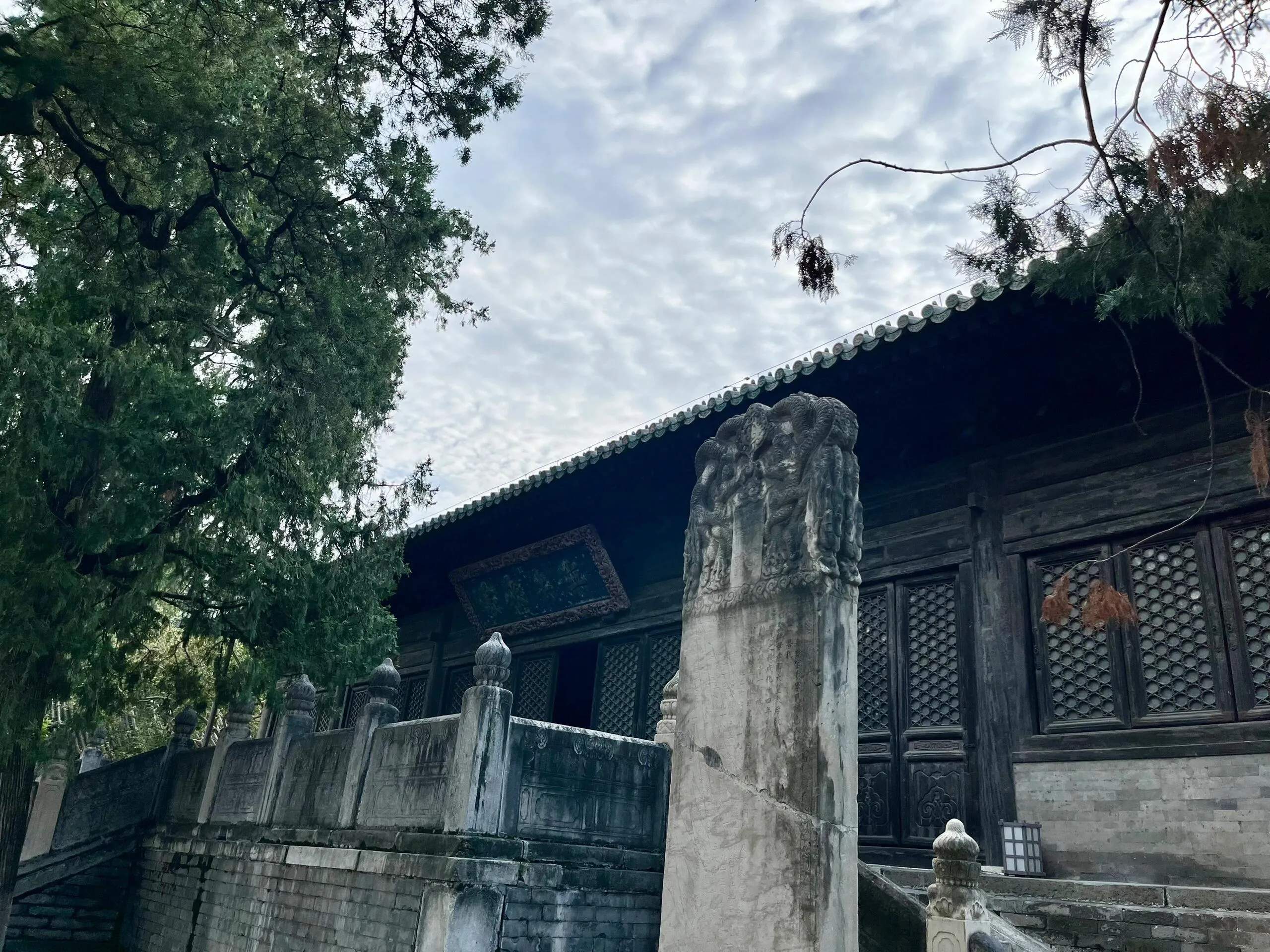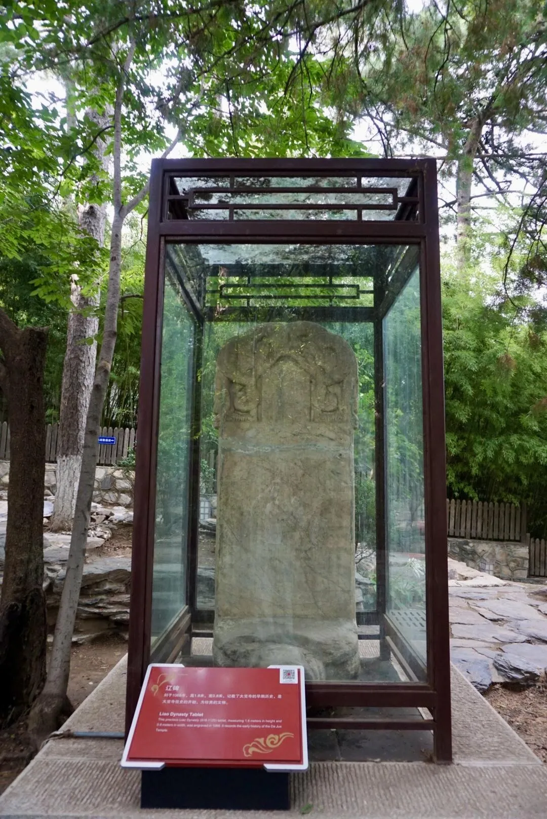 寺院规模宏大,游客较少,但蚊虫较多。 院内大殿周围古树环绕,其中 无量寿佛殿旁的一株银杏树已有千年历史。 后部是一处寺庙园林。寺内的辽代石碑对研究契丹藏有重要价值,明代石碑则记录了重修大觉寺的历史。