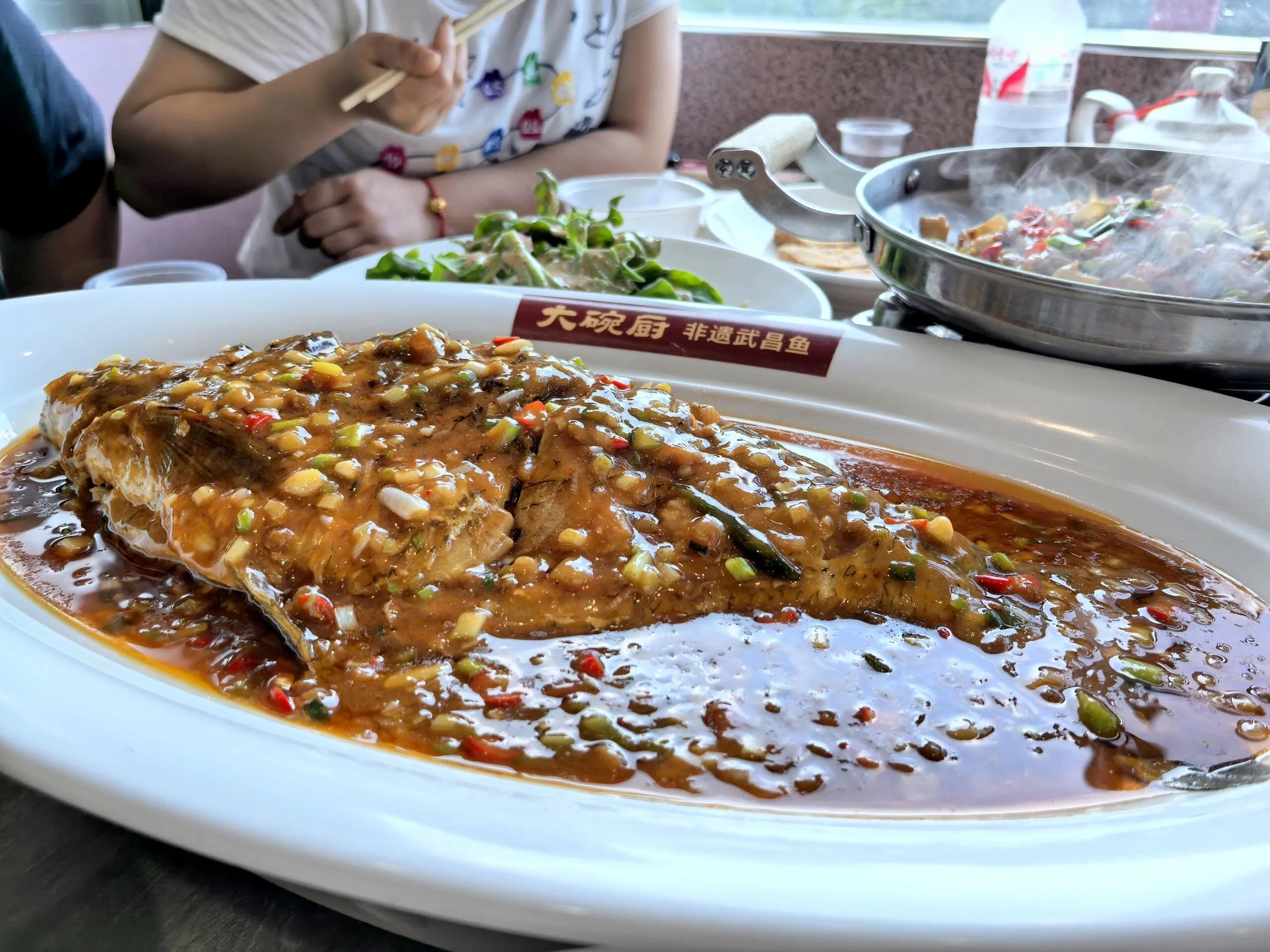 大碗厨的武昌鱼肉质鲜美肥厚 ,与常见的鳊鱼不同,刺少肉嫩。其他家常菜品种丰富,人均消费在50-60元左右。观音阁公园虽然规模不大,但环境优美,适合饭后散步。