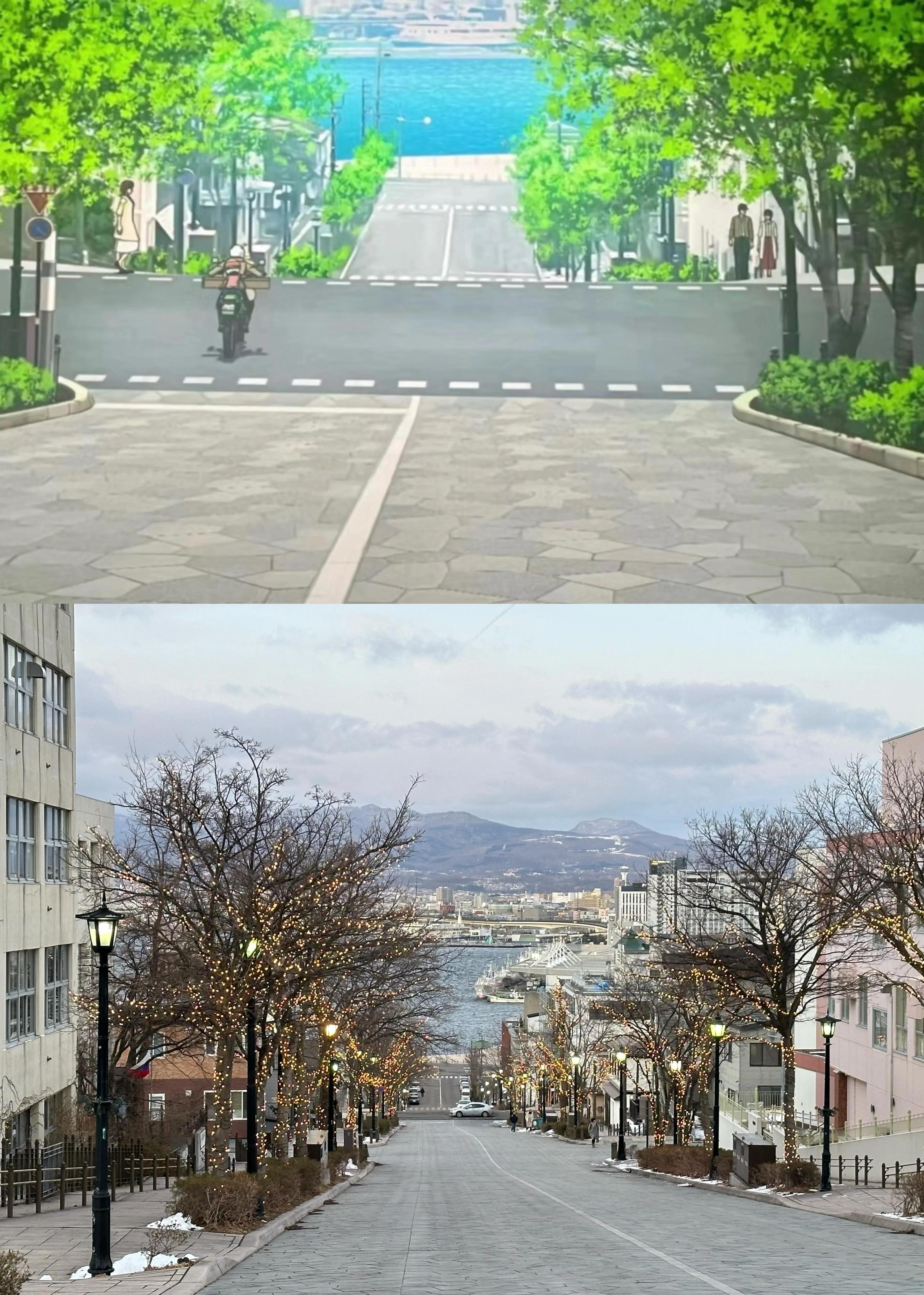 八幡坂是另一处值得一游的地方。从坡上眺望港口,仿佛置身于柯南的动画世界中。坡道较长,坡顶常有游客拍照,游览时需注意安全。
