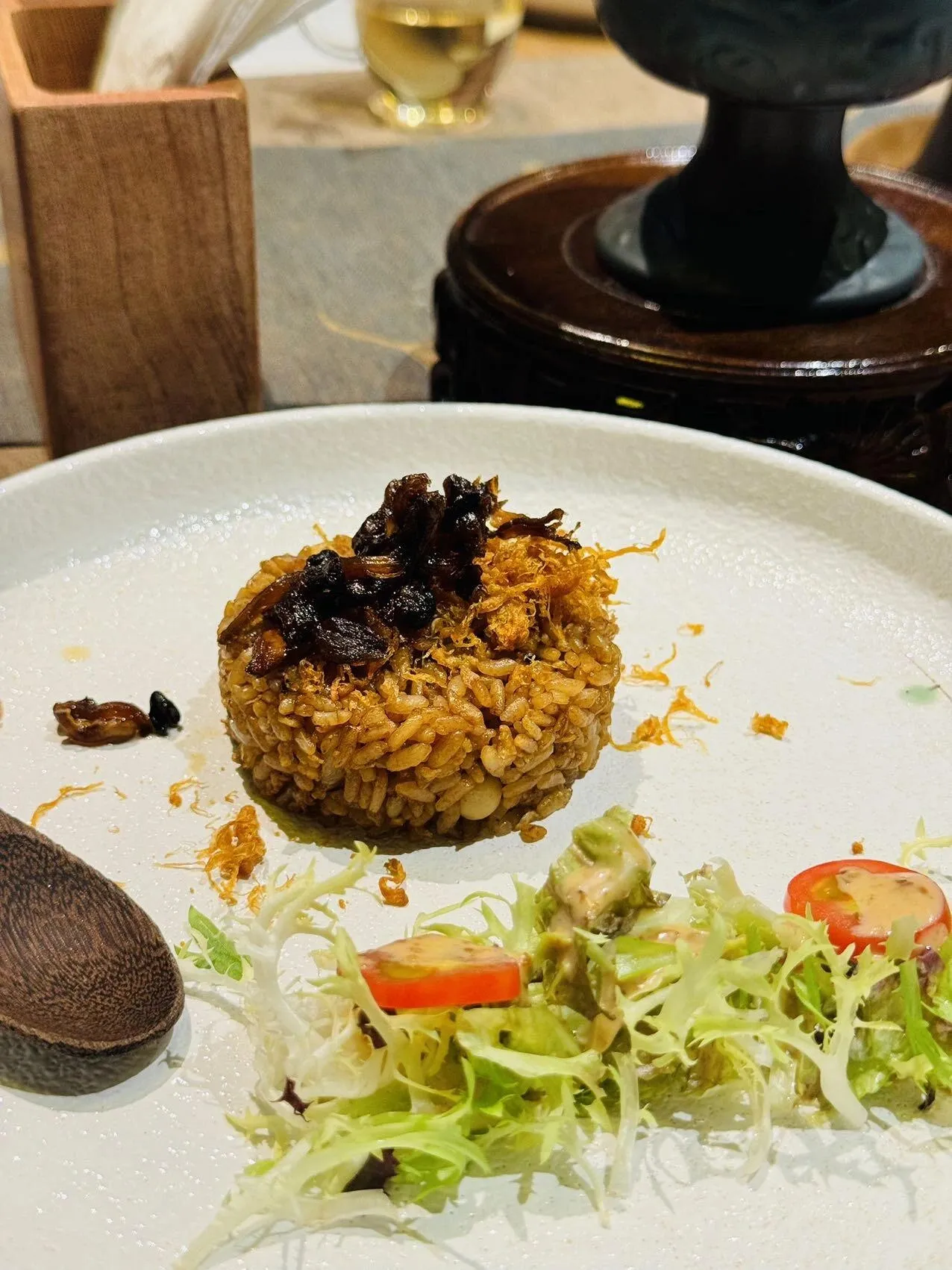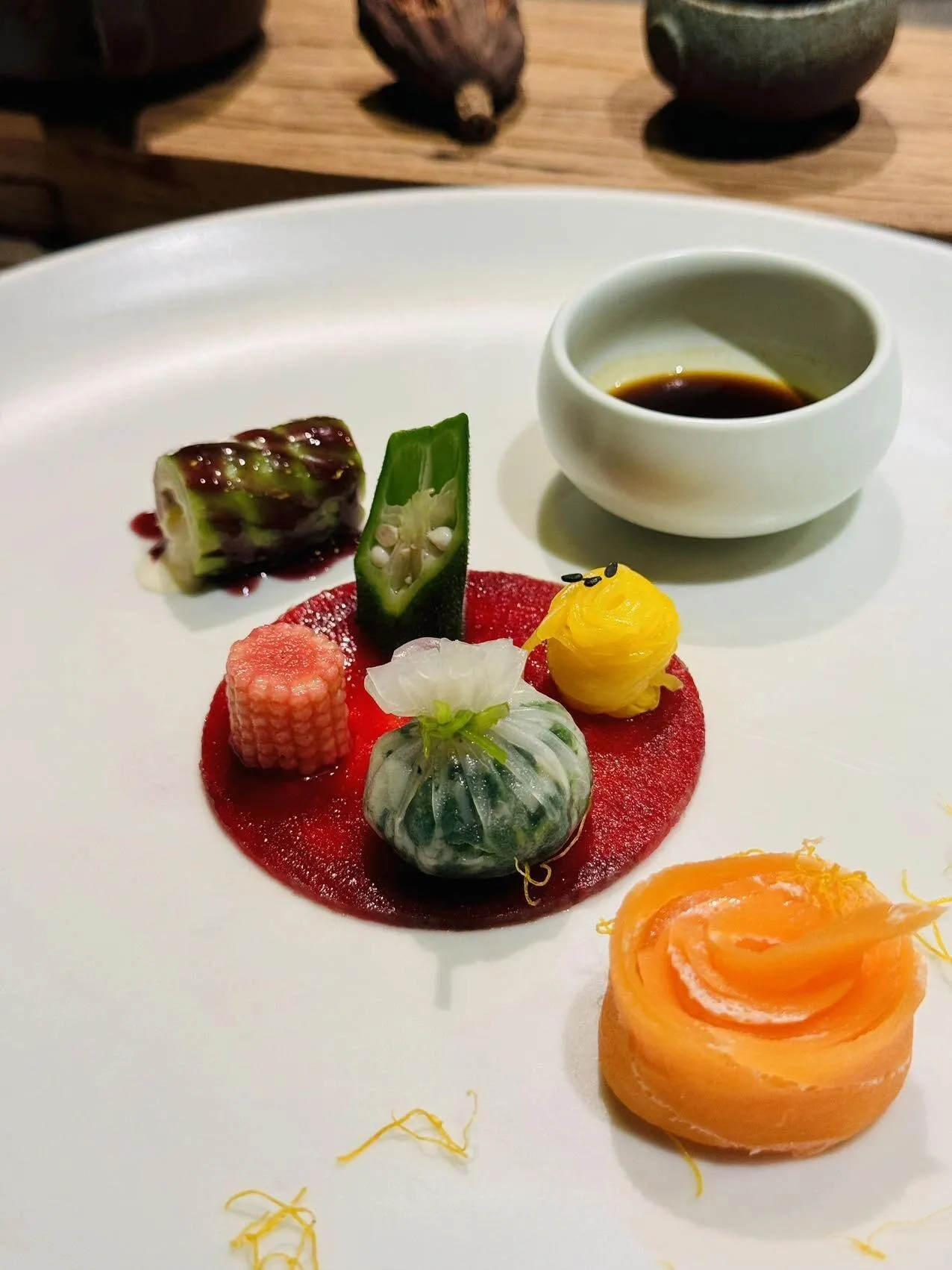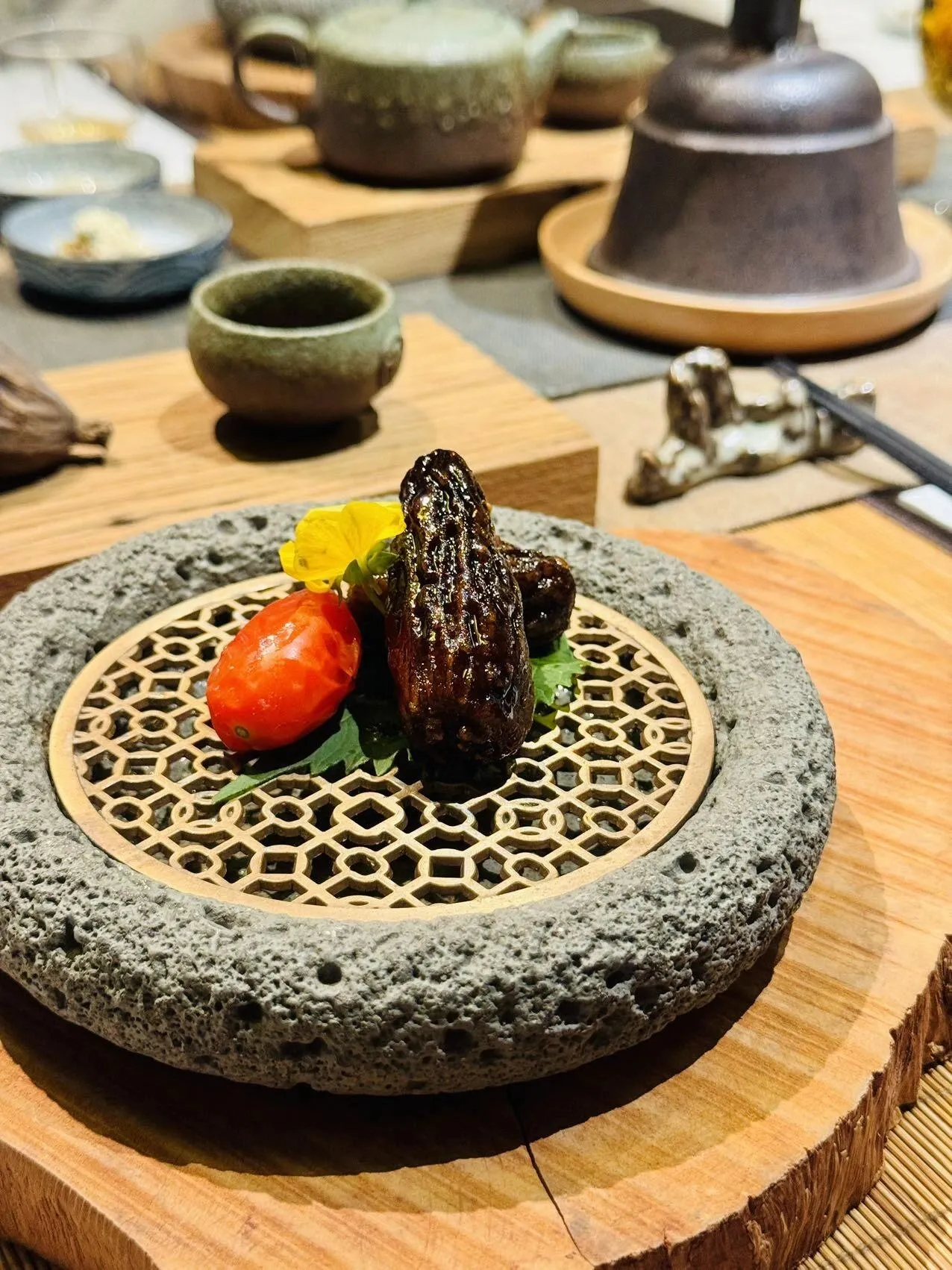 烧汁煎酿羊肚菌:羊肚菌经过精心煎制,浓郁的烧汁香味渗透其中,每一口都能品尝到大自然的馈赠。