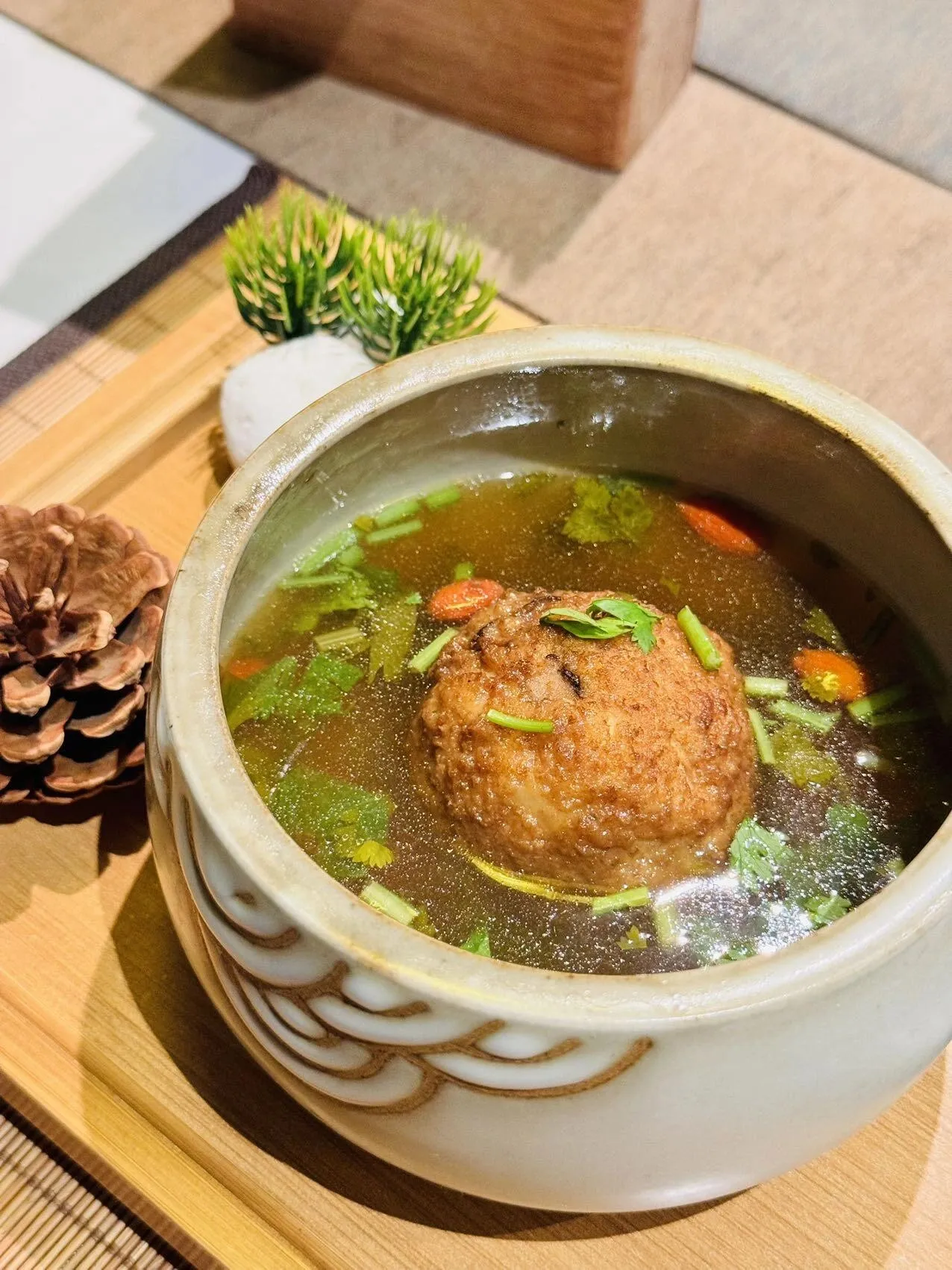 素烧狮子头:以素食材料演绎出狮子头的神韵,口感紧实,味道醇厚,令人惊艳。