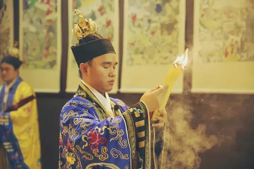 道众通过念咒与仪式将亡灵送往升天的路途。