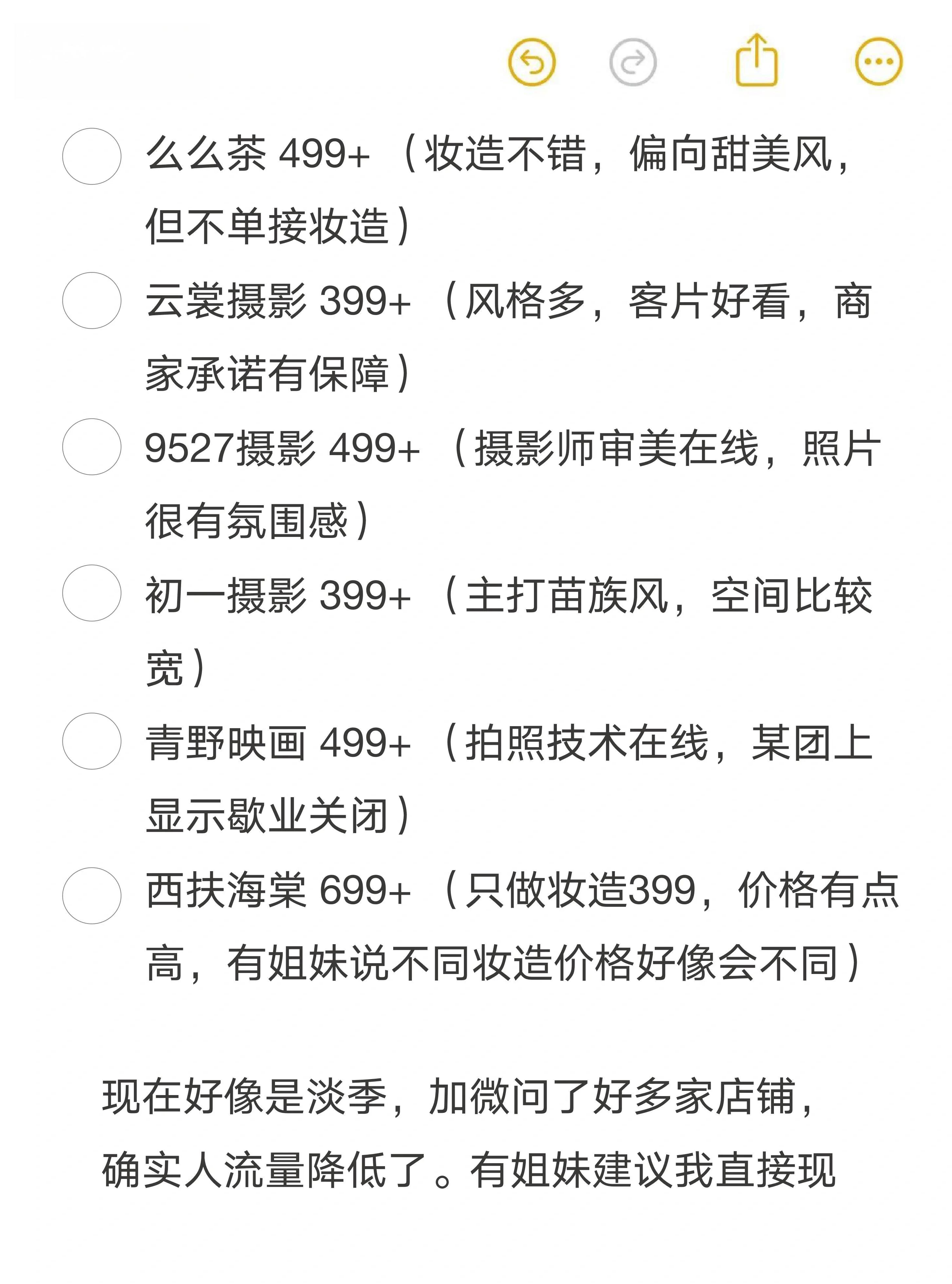 青野映画:起价499元,拍照技术受到好评。需注意某些平台显示其可能已暂停营业。
