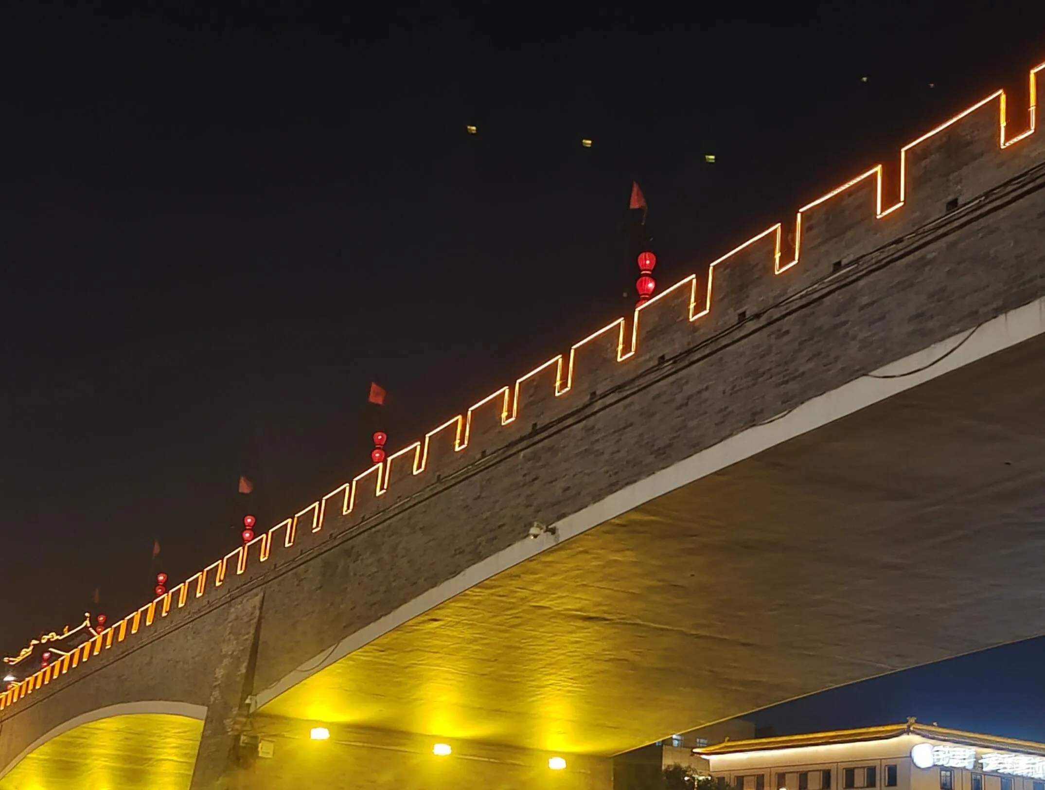 晚上:在西安城墙附近逛街,品尝串串