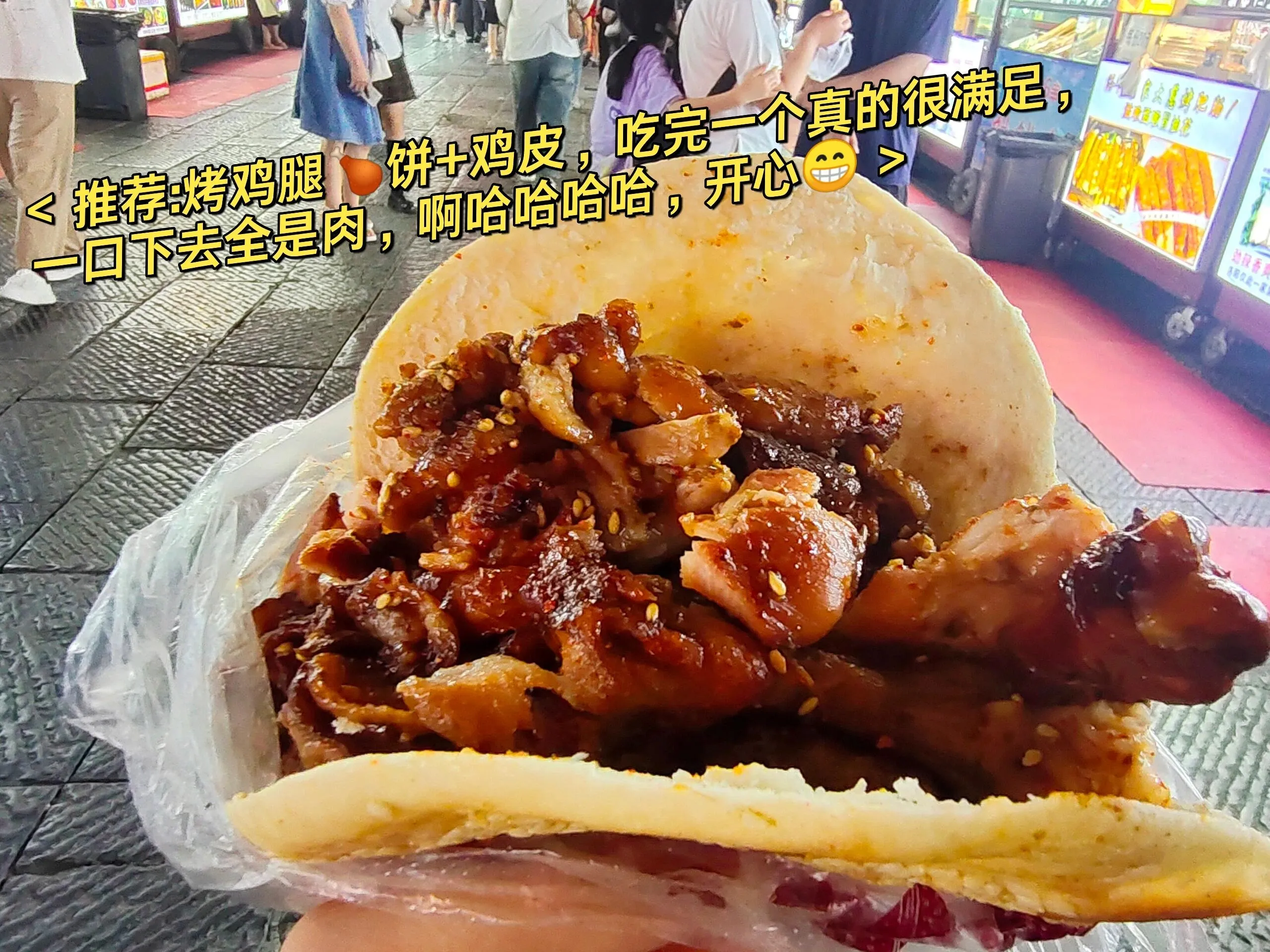 在小红书上种草的,要排队,但是真的值得!可好吃了,吃完满满的肉感,加上鸡皮的油脂,真的超级满足。一口下去全是肉,一个吃完就饱了。