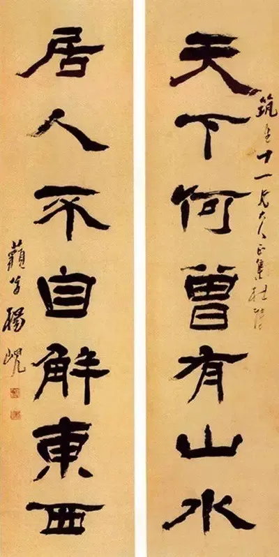 大多数时候,在向书法家乞求楹联书法时,嘱托之人不规定楹联书法的内容,而是任由书家自由发挥。