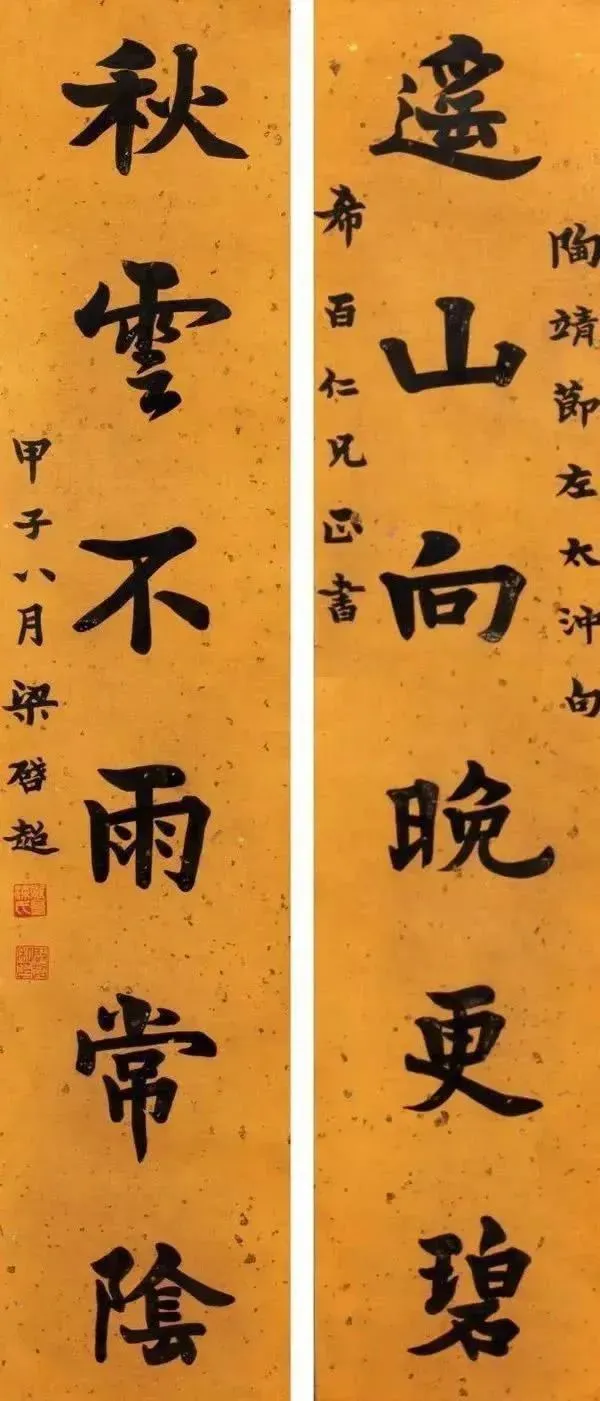 嘱赠楹联书法落款有简明扼要的穷款和意味深长的富款。