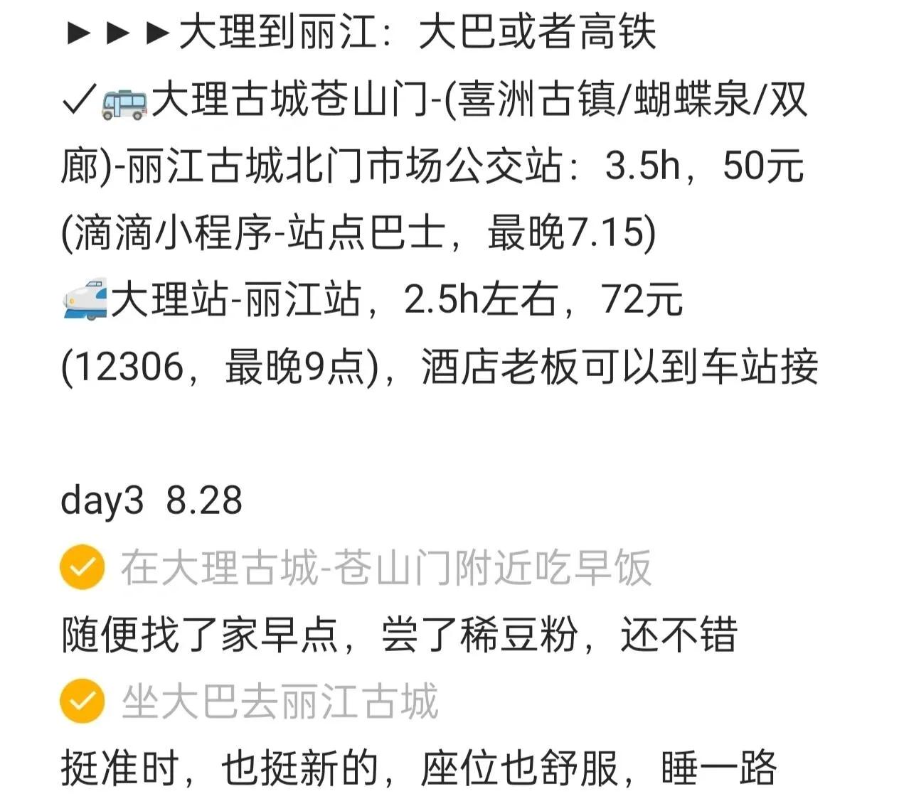 从大理前往丽江,推荐选择大巴车。这种方式既方便又直接,可以在大理古城附近上车,直达丽江古城,避免了去火车站的麻烦。