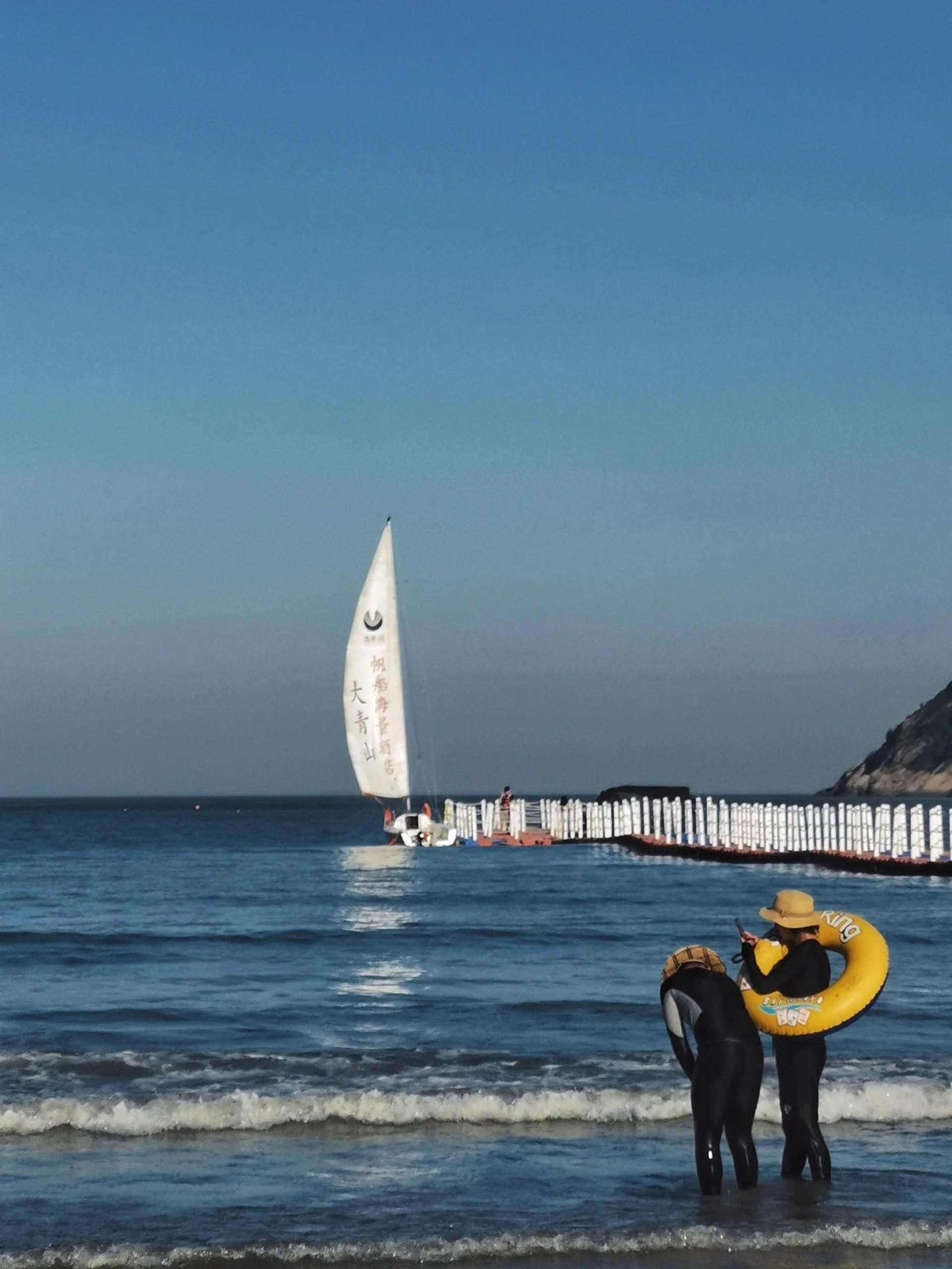 下午4:00前往 东沙 。门票30元,相比南沙,东沙人少,沙子也很细腻。这里提供免费游泳圈和冲脚设施,非常人性化。
