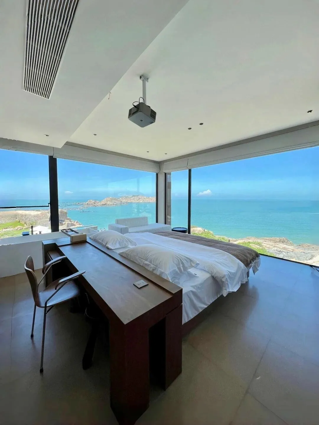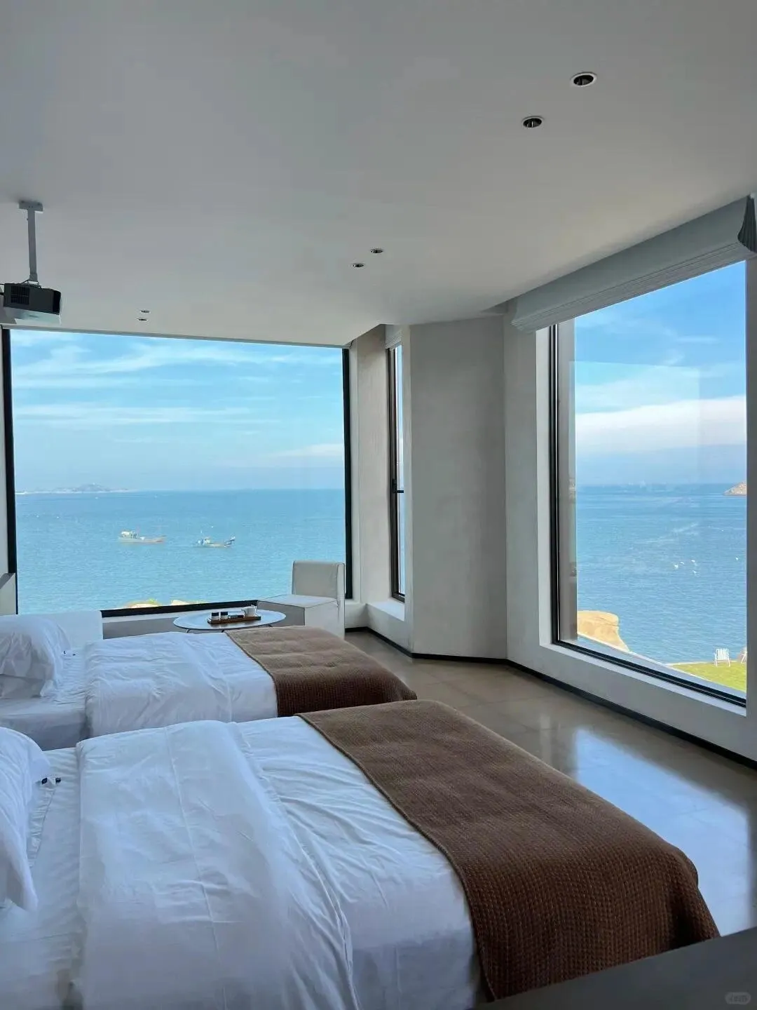 民宿环境优雅,房间设有落地窗,可以欣赏到迷人的海景和山景。房间内配备投影仪,为住客提供额外的娱乐选择。民宿主人热情好客,提供免费接站服务,并会提前开好空调,让客人一到就感受到温暖。