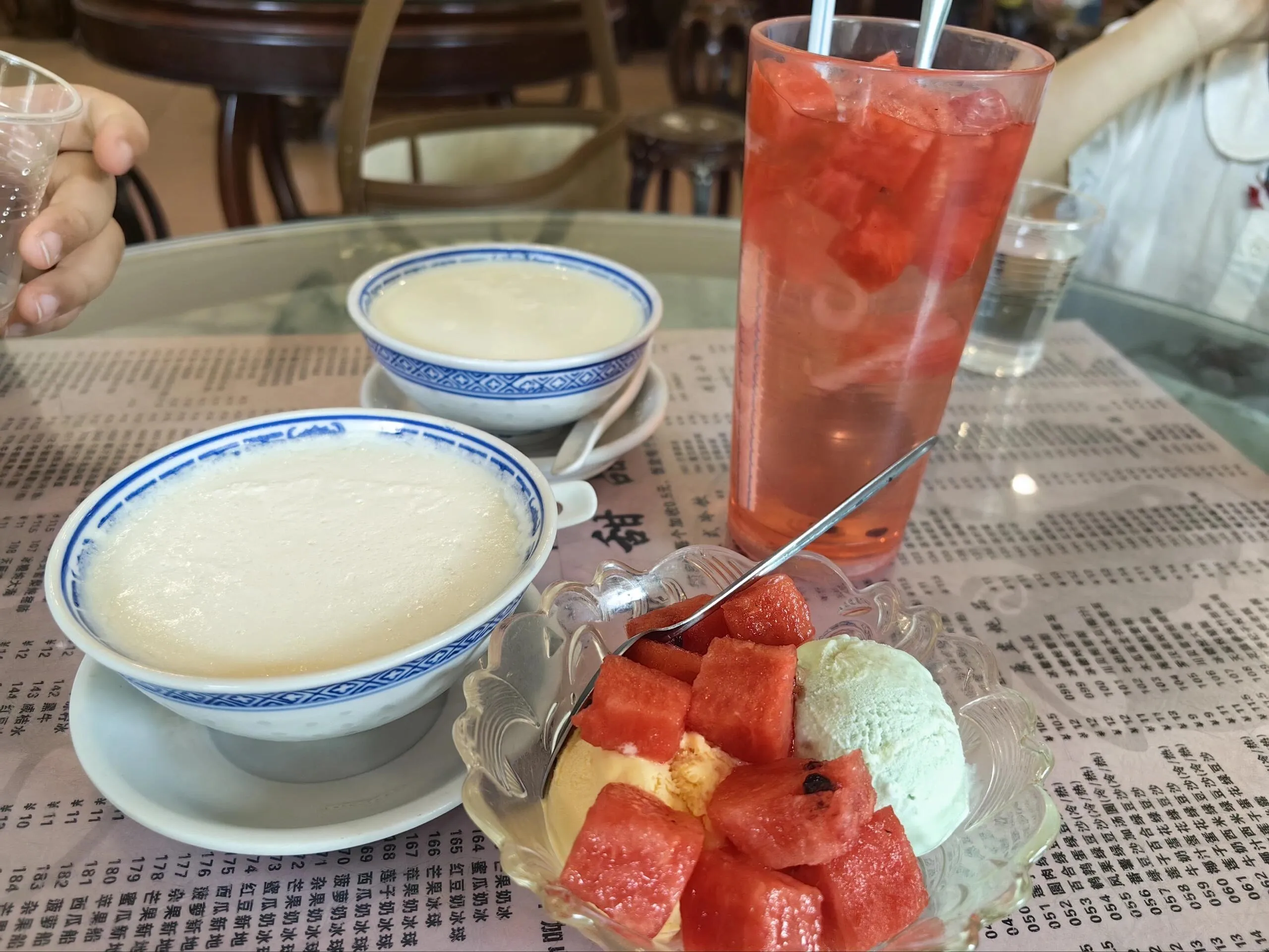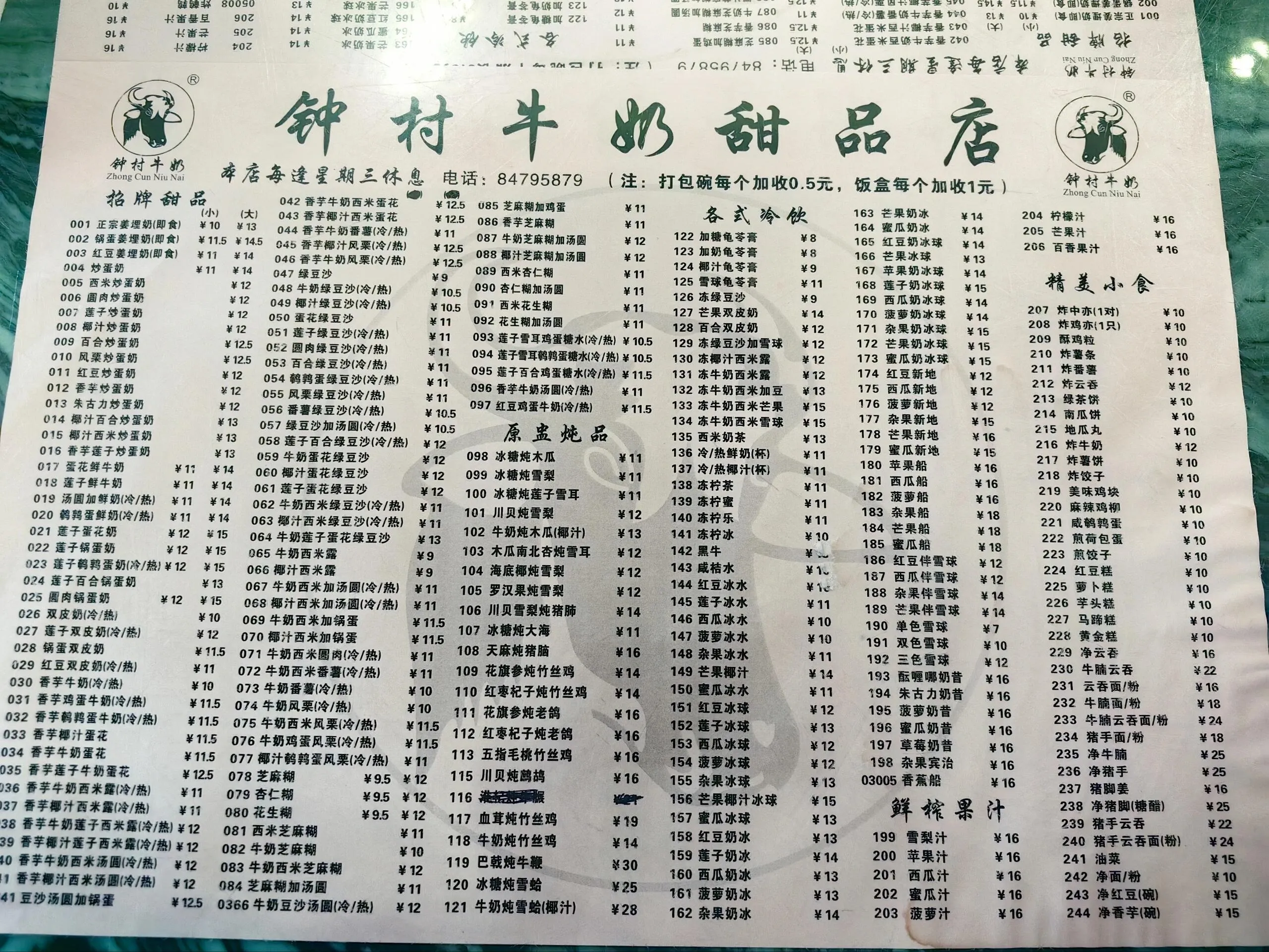 接着我们去了开了近20年的甜品店 钟村牛奶 。这里的双皮奶是招牌,炸云吞酥脆地道。(注:钟村牛奶每周三店休。)