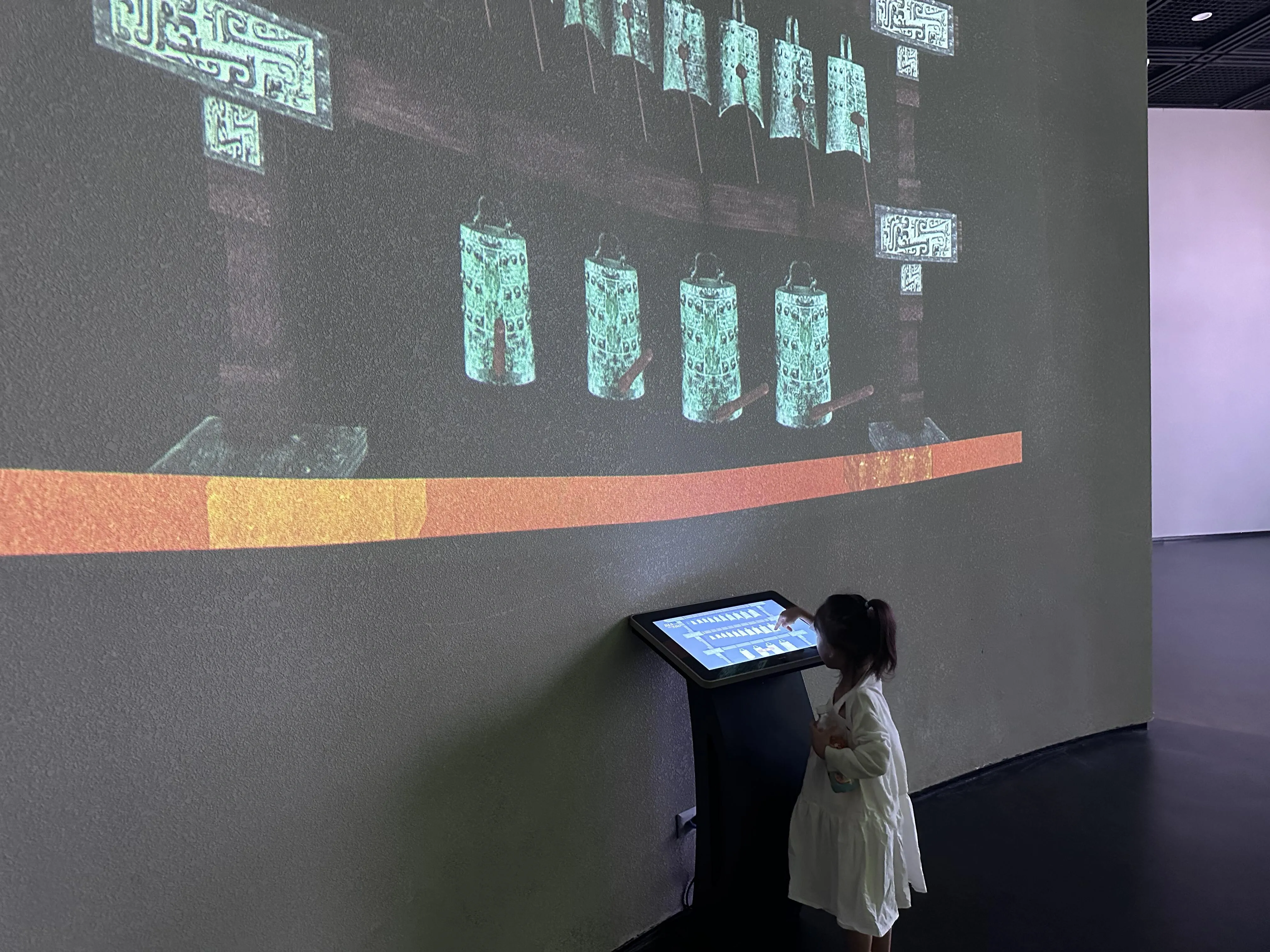 二楼设有“繁花似锦·豫见红楼”数字艺术展,需要另外购票。同层的“天地之中”展览则集中展示了郑州的历史文化,让人深入了解这座城市的过往。