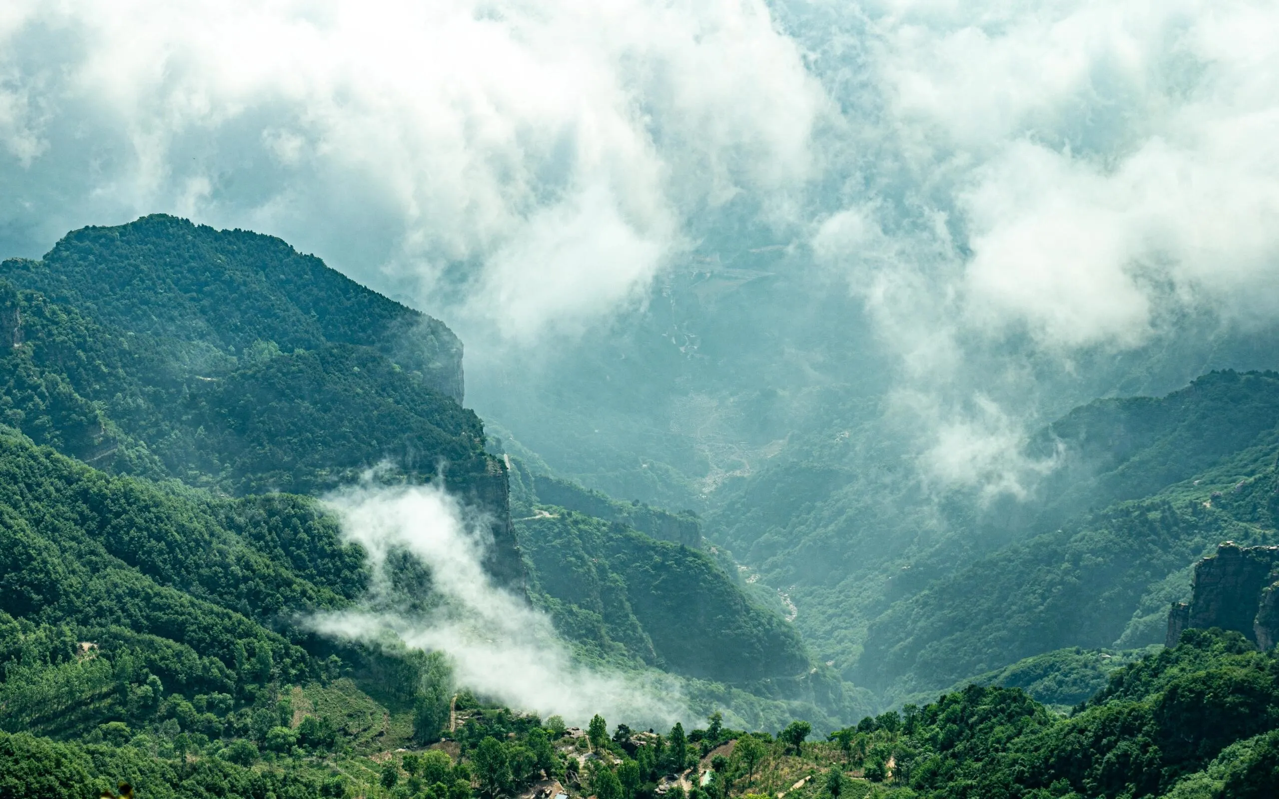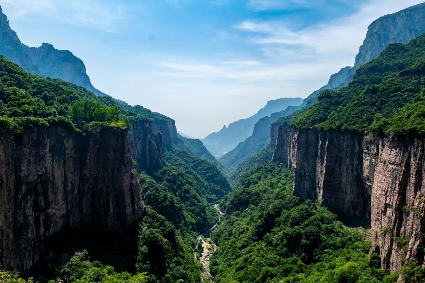 太行山脉横跨河北、山西和河南三省,绵延八百里。其中南太行因得天独厚的水资源,风光尤为绚丽。与江南山水的清秀不同,太行山脉以其奇雄刚烈的特征著称。峭壁如刀削,峡谷纵横,既有雄伟壮阔之势,又不乏秀丽景致。高山云海之间,美若仙境。