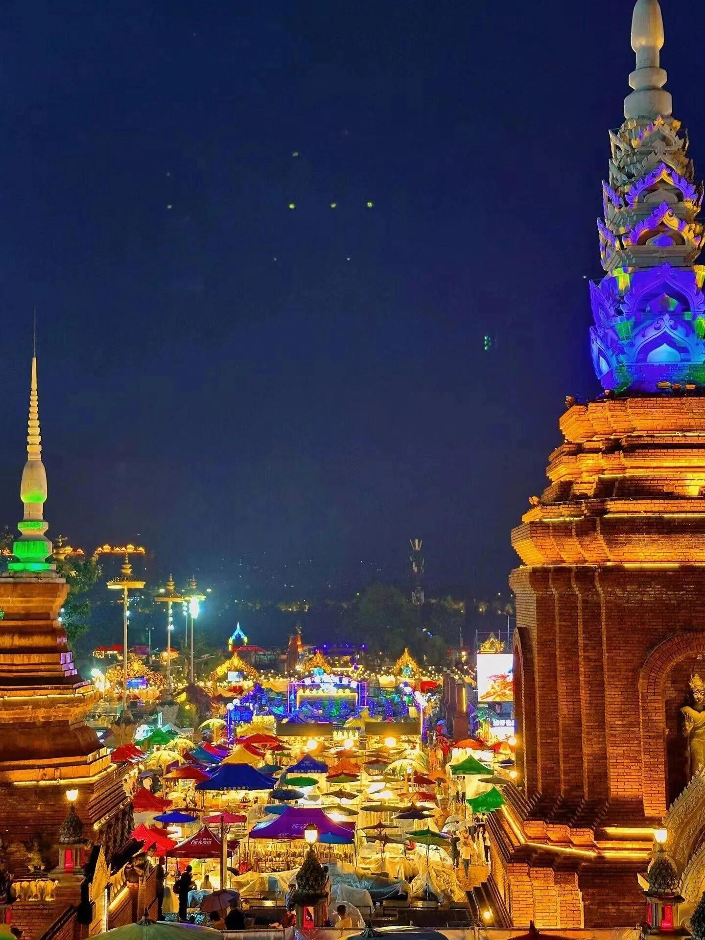 星光夜市:这是我见过氛围最棒的夜市,据说是亚洲最大的夜市。夜幕降临后,这里成为西双版纳最热闹的地方。街上到处都是穿着公主装的游客,化妆水平都很高。不过摄影师水平参差不齐,如果自己带相机或会拍照,可以买套漂亮的傣装,去店里化个妆自己拍。