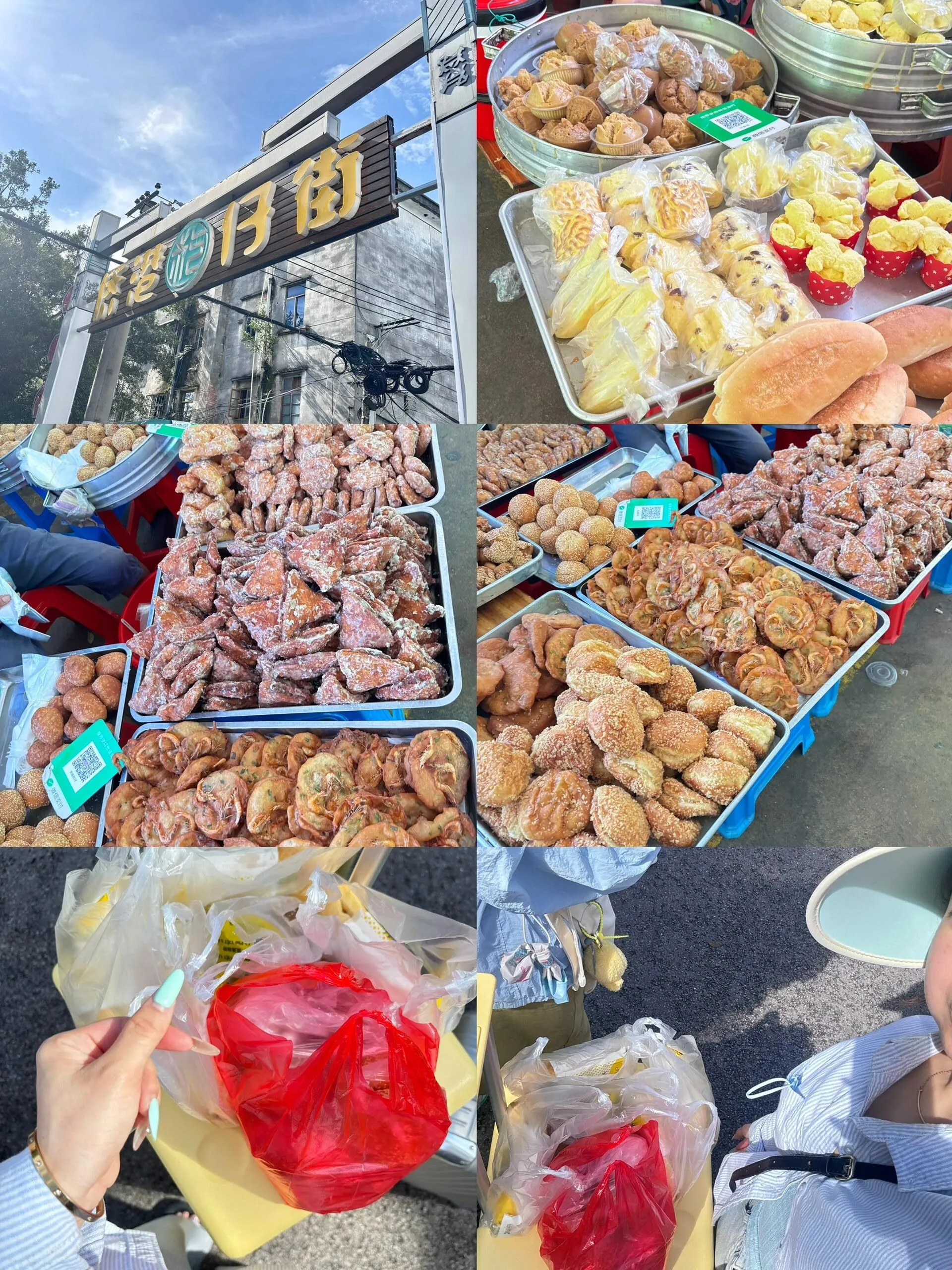 桥港早市有许多美味糕点。 24棟糖水和板栗芋圆都是必喝之选,虽然排队人多但值得等待。还有一家越南卷粉,酸甜可口。