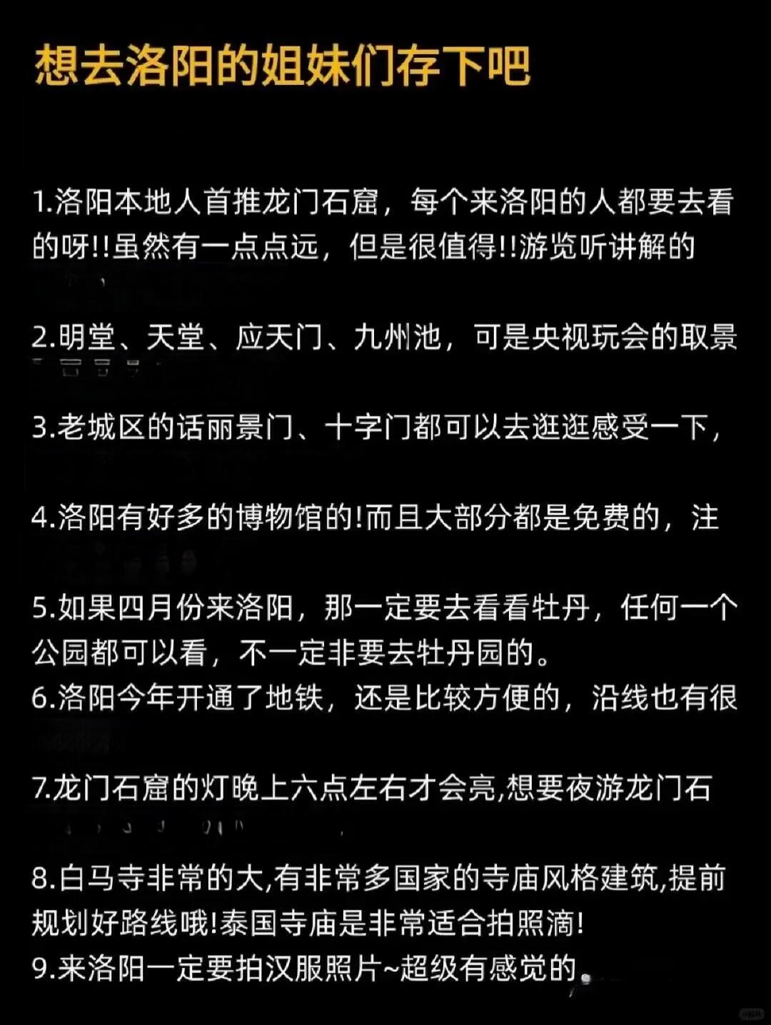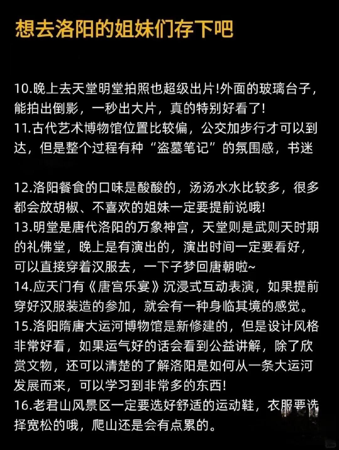 希望这些建议能帮助到准备去洛阳旅游的你们,祝大家玩得开心!