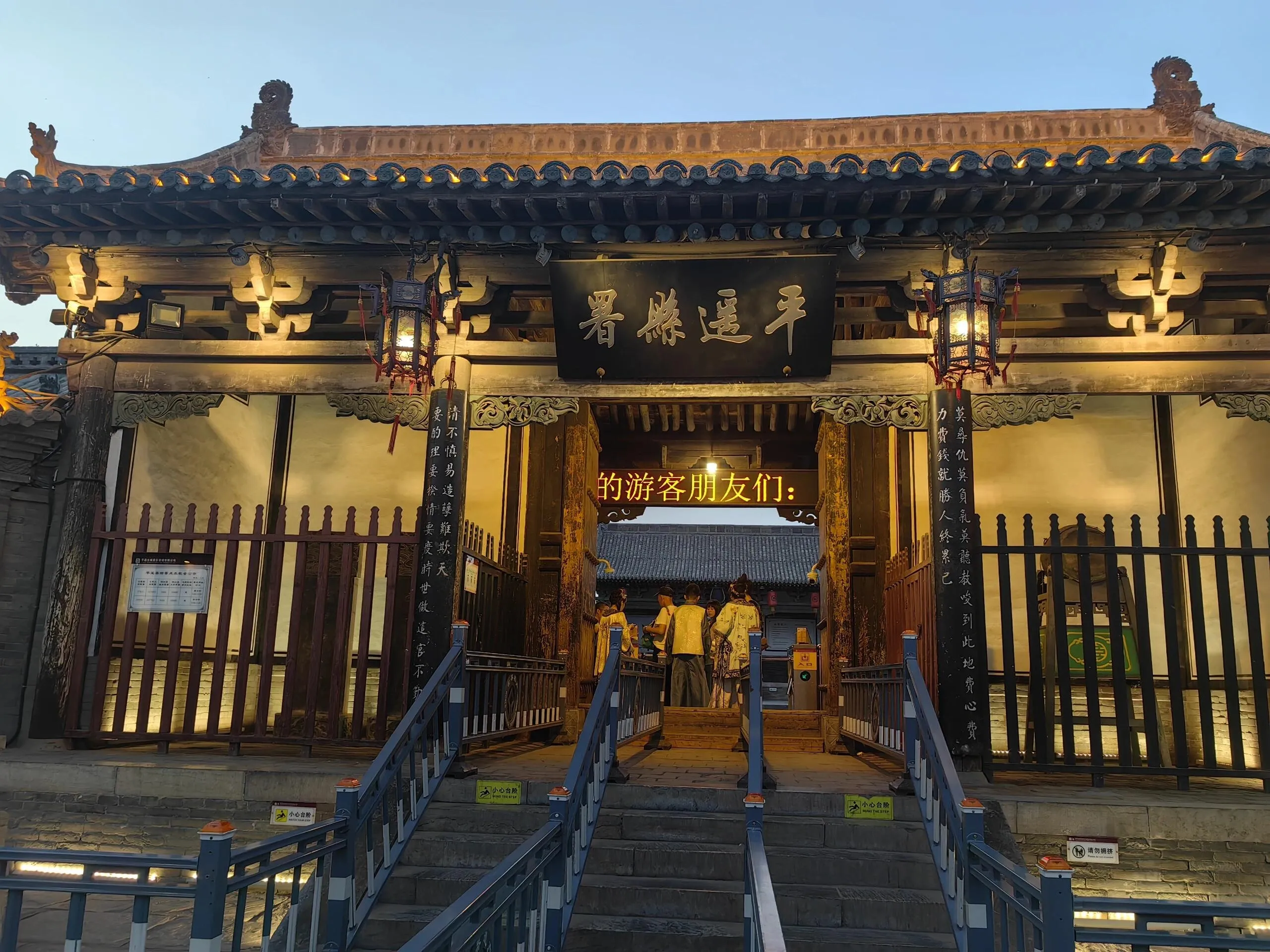 平遥古城的灯光秀在晚上8点开始。 需要注意的是,南门迎熏门晚上8点关闭,早上6点开门,游客朋友们要合理安排时间。