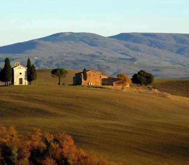 托斯卡纳位于意大利中部,被誉为“华丽之都”和“人间最接近天堂的地方”。这里包括佛罗伦萨、锡耶纳、比萨等著名旅游热点。托斯卡纳的标志是起伏的丘陵、连绵的耕田和高耸的龙柏。秋季,这里层林尽染,山顶的枯枝间偶尔露出尖尖的钟楼,山间的炊烟下是红色屋顶组成的村镇,构成一幅令人流连忘返的美景。