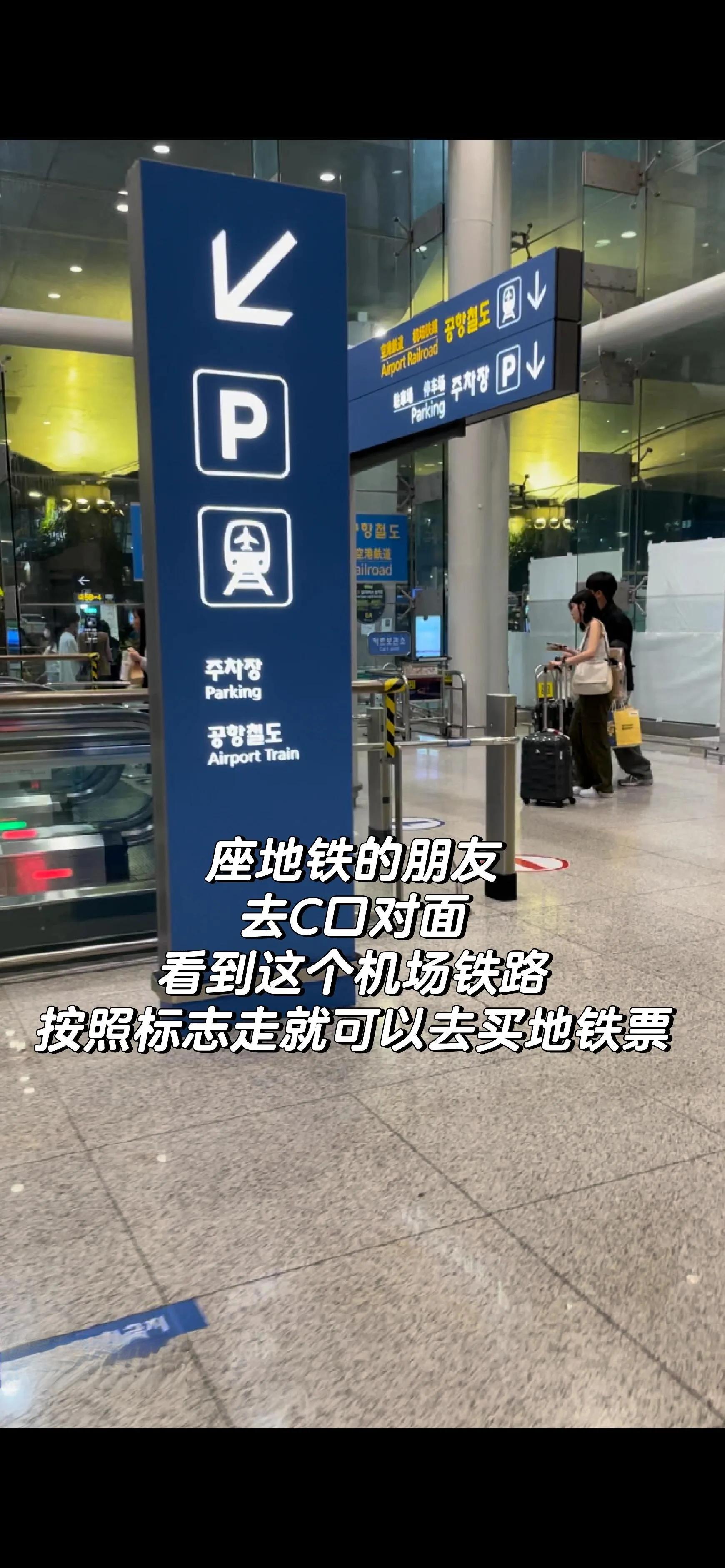 如果你打算坐地铁,可以到C口对面。看到“机场铁路”四个字的标志,按照指示走就能找到地铁站。