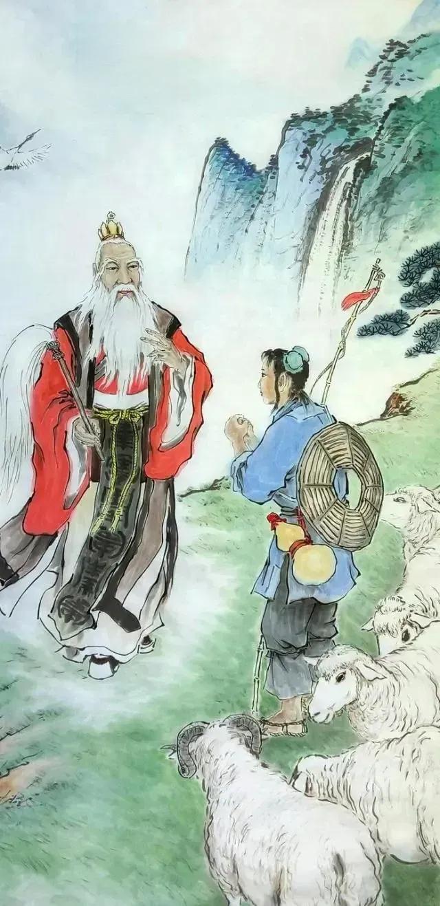 他十五岁外出放羊,曾被神仙带至金华山石室中修炼。