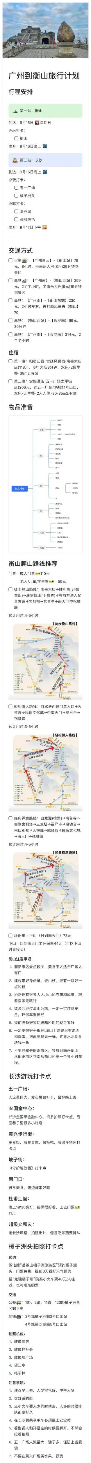 这个行程安排紧凑,既能领略衡山的自然风光,又能体验长沙的城市魅力,是一次不错的中秋小长假选择。