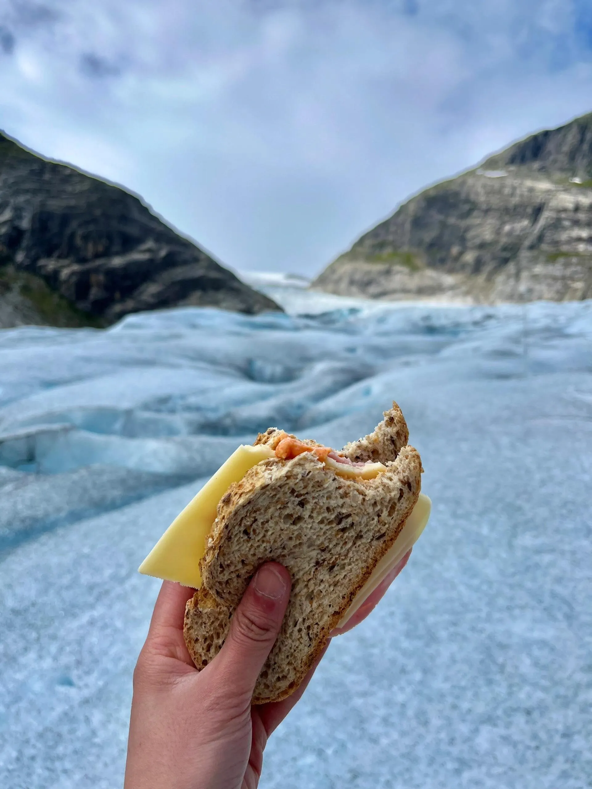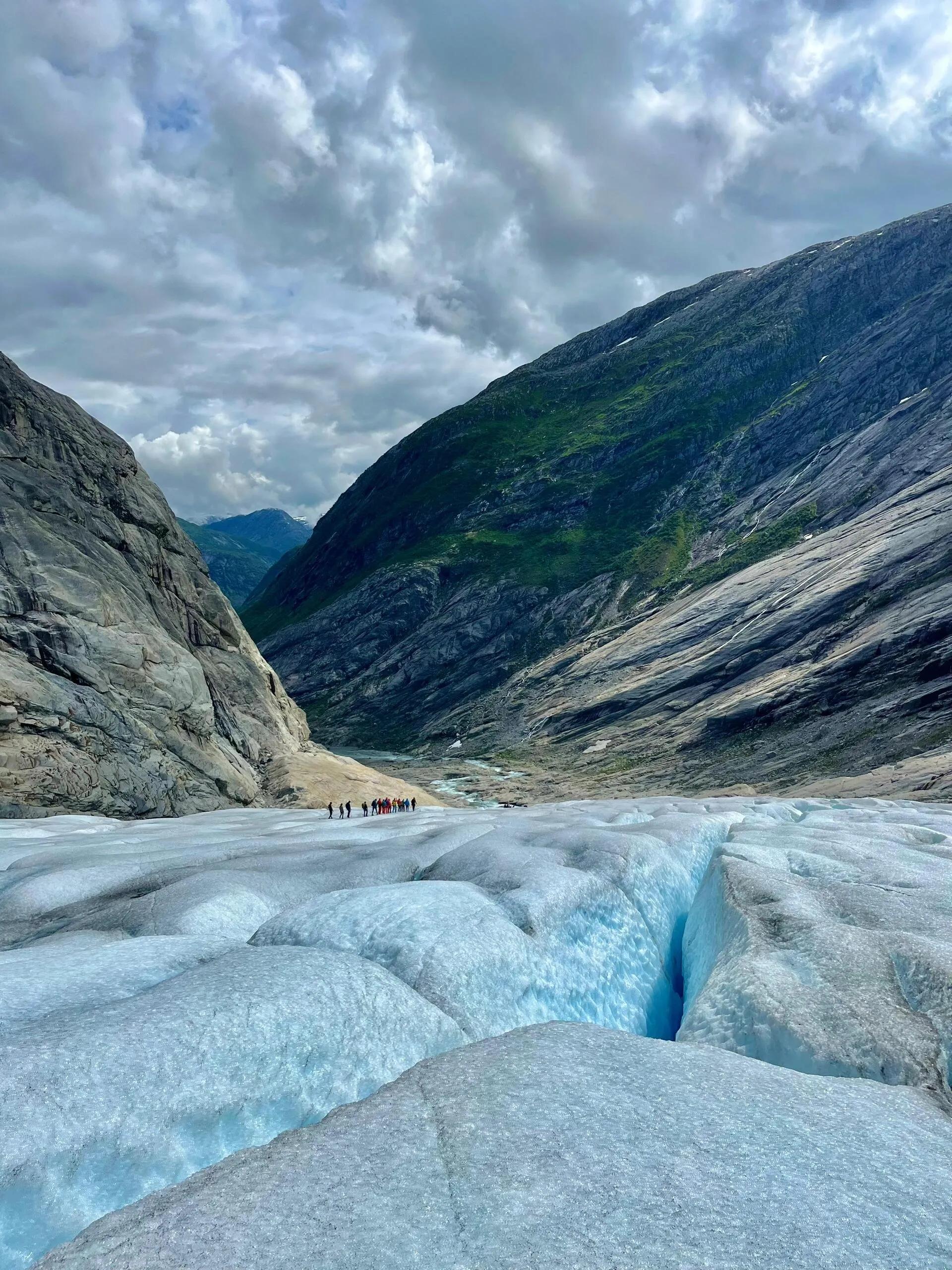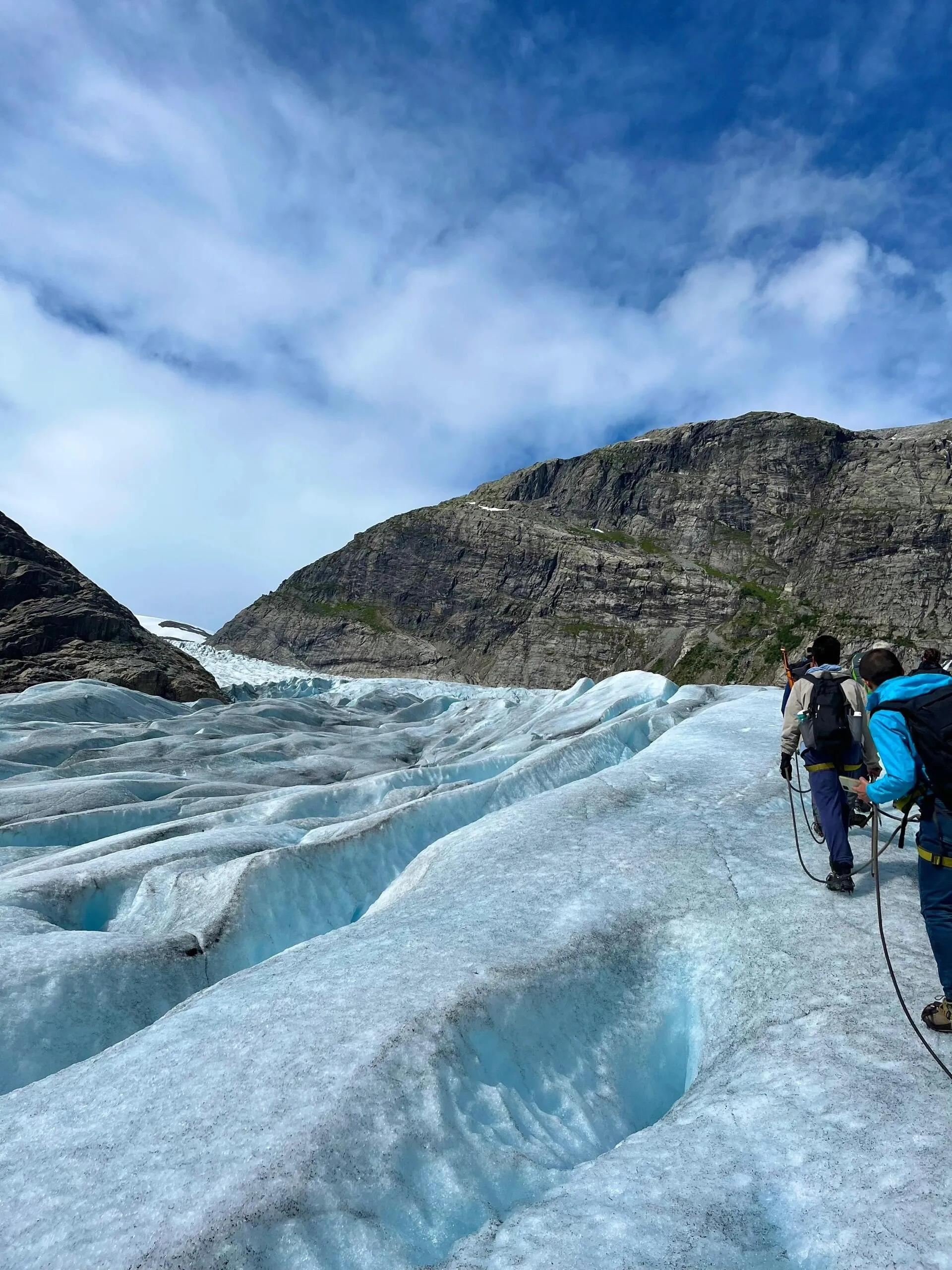这次在挪威最期待的行程就是冰川徒步!六年前我在冰岛已经体验过,但当时天气不是很好,照片都是一片灰蒙蒙。所以格外期待这次的体验,终于遇上蓝天白云了!