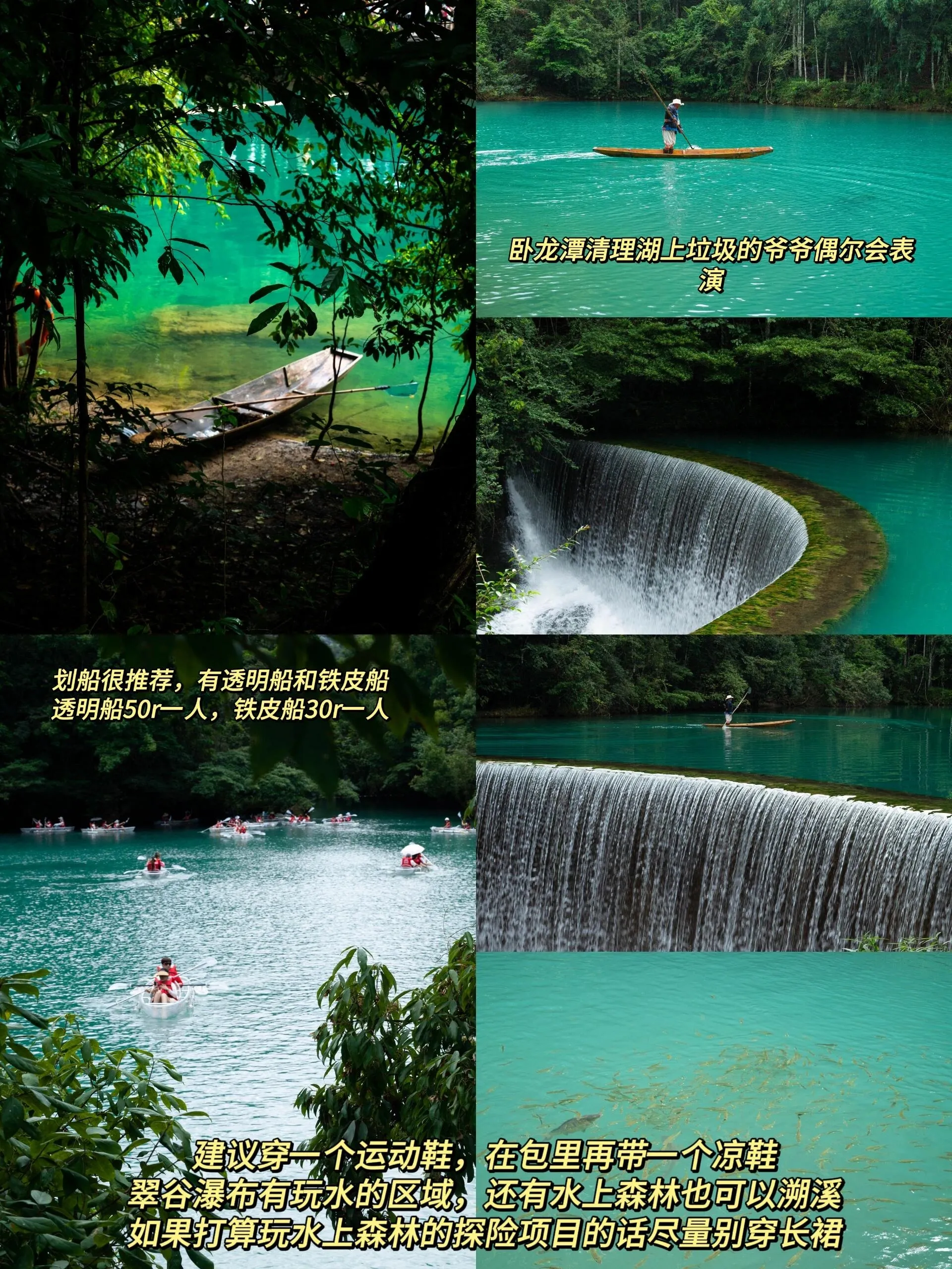 早上6:21乘高铁前往荔波,票价60元。游玩路线选择东进东出,强烈推荐卧龙潭,鸳鸯湖的划船项目也非常值得体验。由于已经参观过龙宫,荔波的溶洞可以不去。如果不去大七孔,游览完预计在下午6:30。