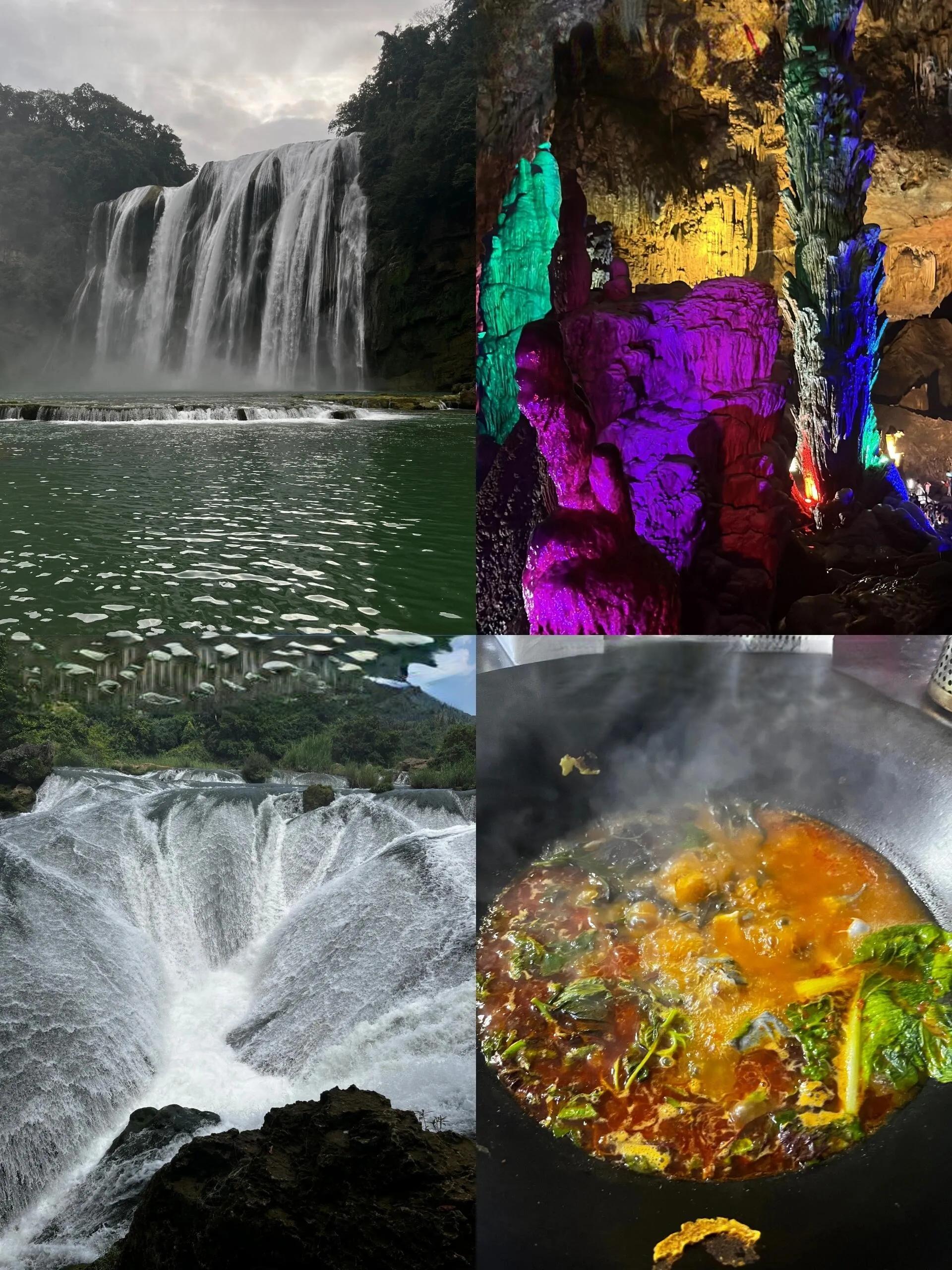 早晨在贵阳随意逛逛,感受这座城市的魅力。中午12:42乘坐硬座火车前往安顺,票价15.5元。抵达安顺站后,乘坐大巴前往黄果树瀑布,票价22元,车程约1小时。