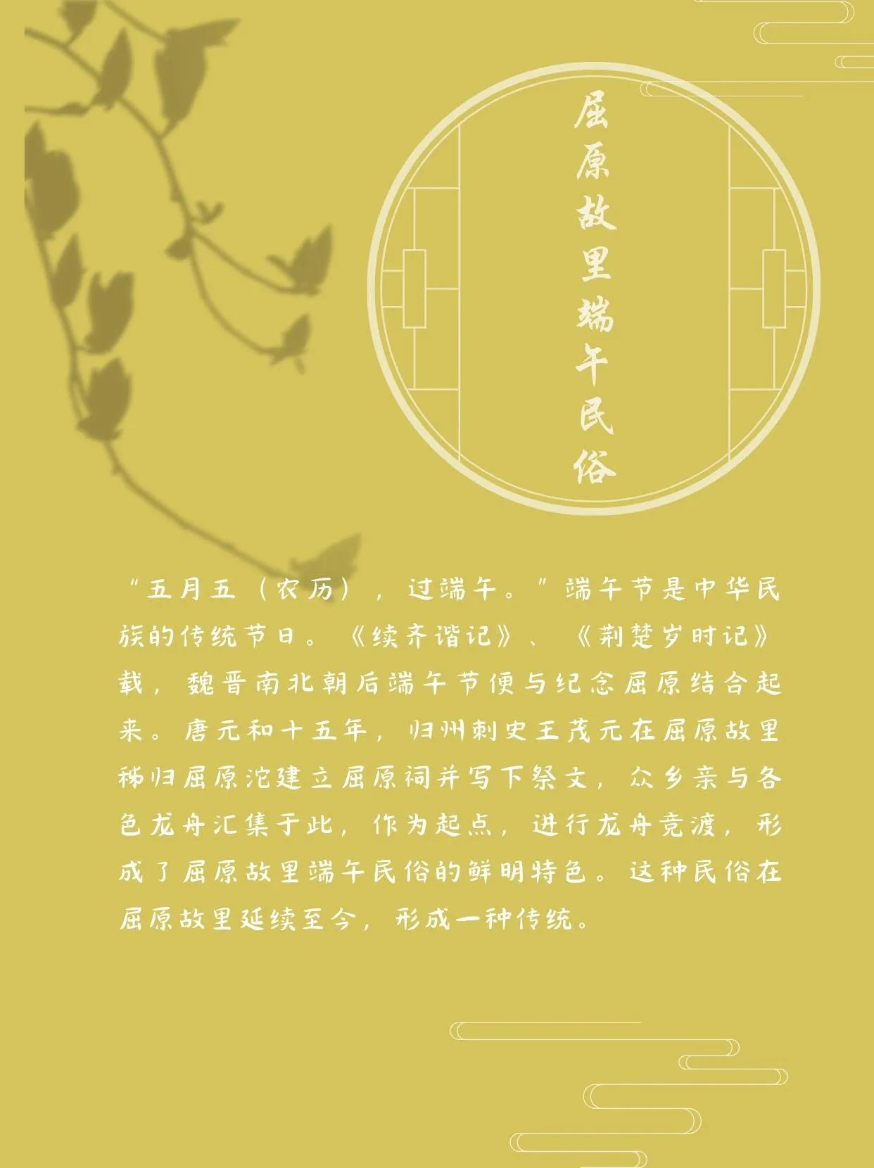 端午节是中华民族的传统节日,自魏晋南北朝后,这一节日便与纪念屈原结合起来。在屈原的故乡秭归,端午节的庆祝活动尤为隆重和独特。