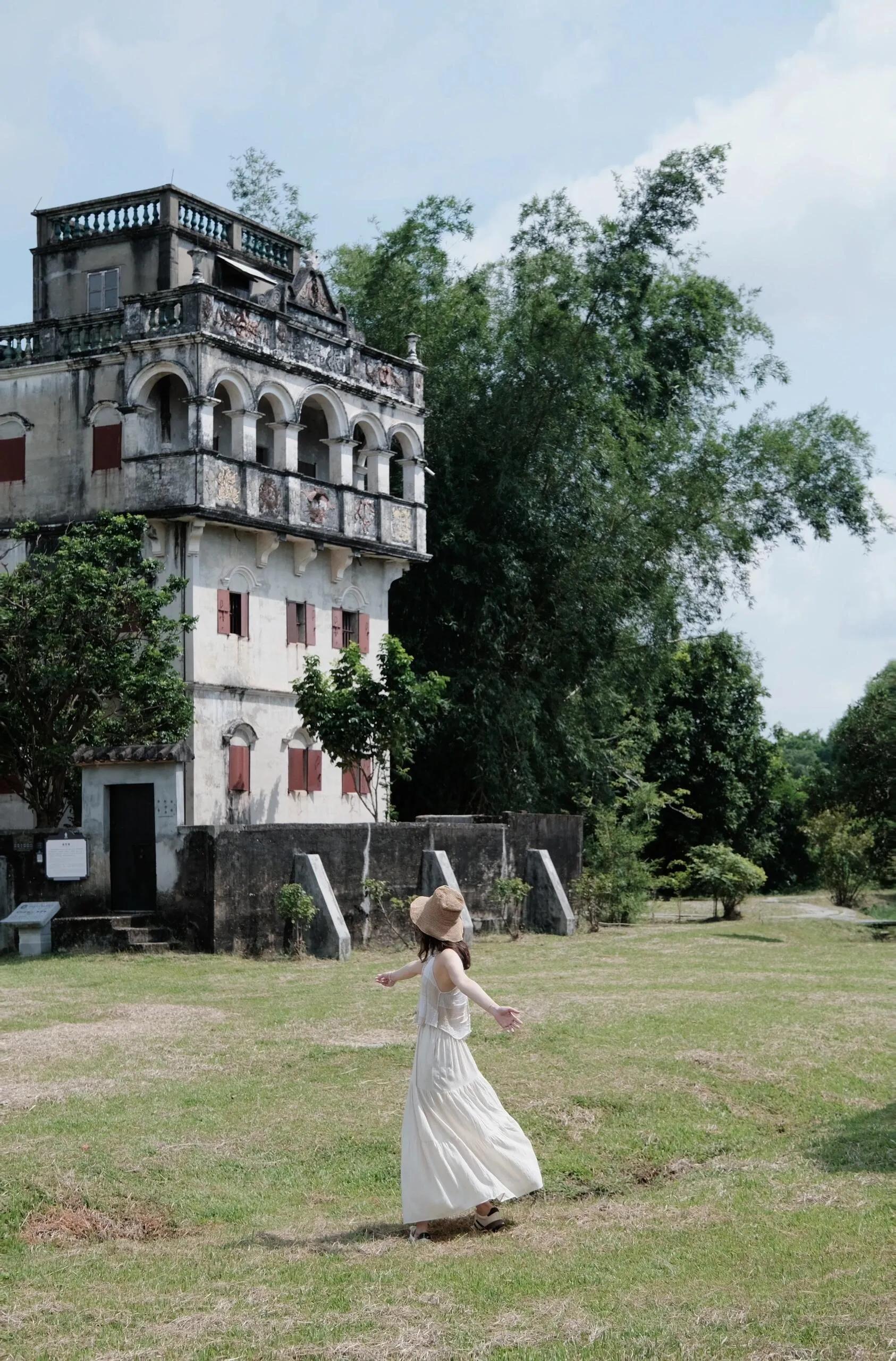 开平自力村碉楼群是一个极佳的拍照地点 ,这里有多个值得打卡的机位。进门后沿着小路走,遇到一棵大树时就到达了第一个拍照点。在这里,阳光和树叶的倒影会营造出非常上镜的效果。继续前行,会看到一片大草坪,这是第二个拍照点。在草坪上奔跑、旋转或跳舞都能拍出美丽的画面。第三个拍照点位于碉楼的最高层,那里有一个小天台,拍出的照片会给人一种身在法国的错觉。