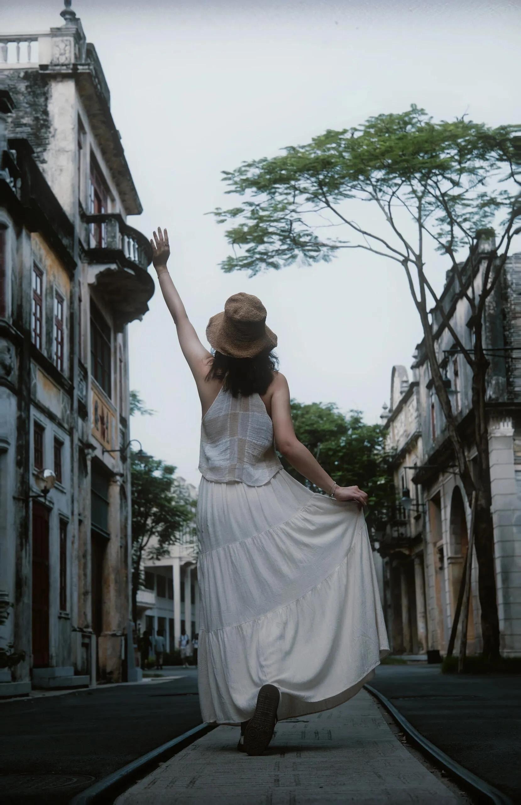 赤坎古镇则处处是景 。红色的门、电车轨道都是很好的拍摄背景。 特别推荐等待电车经过时与之互动拍照 ,这需要摄影师和模特都反应迅速,快速找位置、摆姿势,抓住稍纵即逝的瞬间。