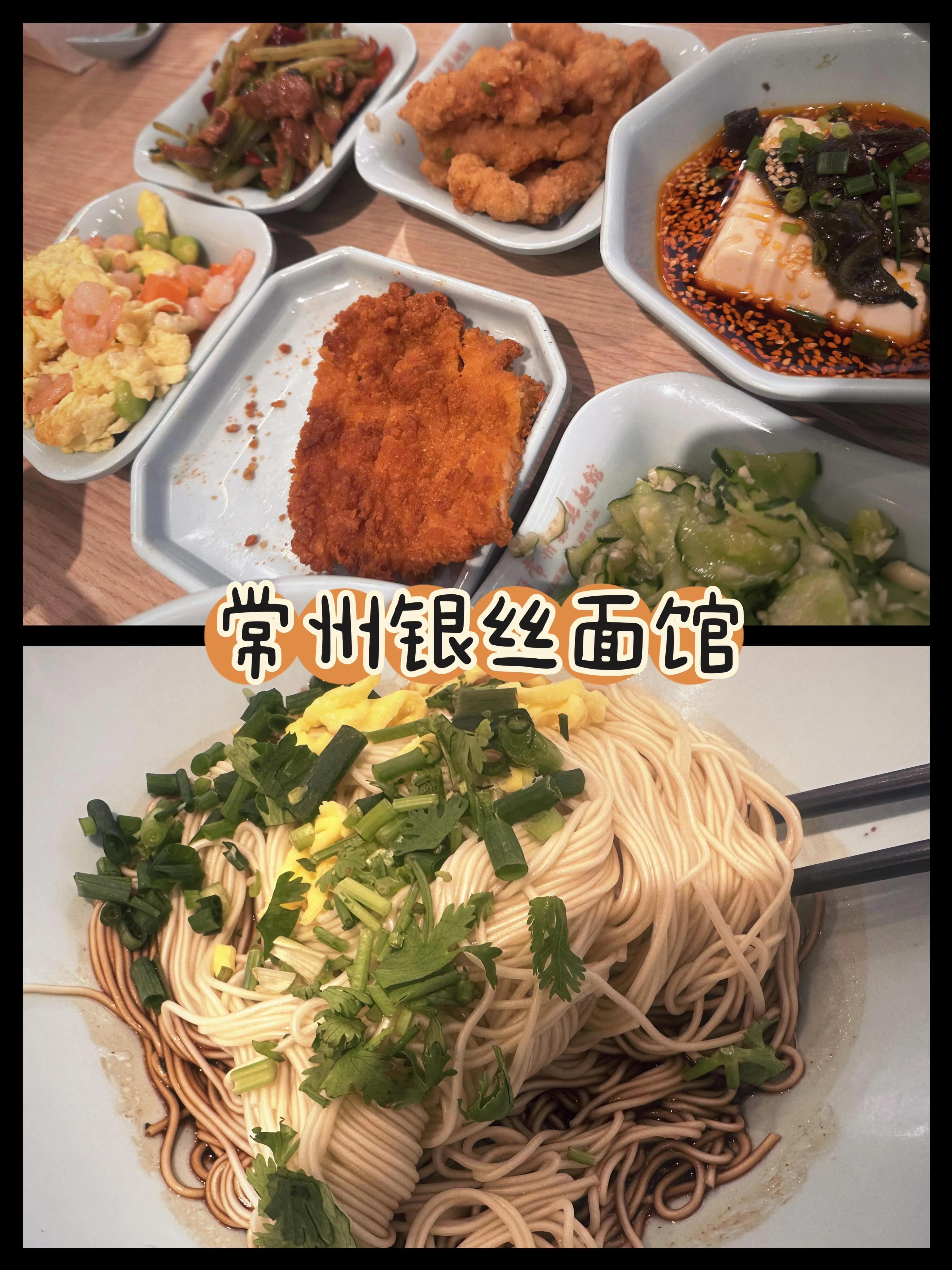 第一站是常州银丝面馆。这是一家非遗传承的面馆,面条6元一碗,我们这一桌才花了95元,量很大,值得一试。直接导航到常州银丝面馆“世茂店”,有地下停车场,吃饭期间没收取停车费,而且离恐龙园很近。