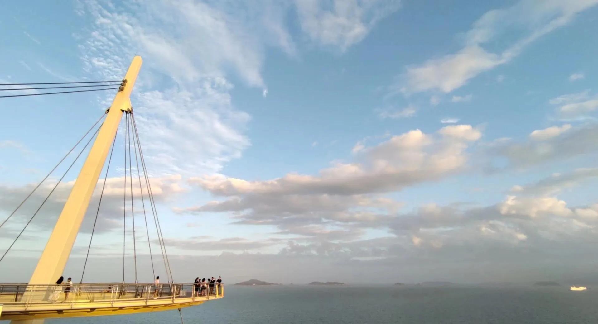 在海上飞碟处观看大海,是一种独特而震撼人心的体验 。厦门的山海健康步道绝对值得一走,这里处处彰显着厦门的浪漫气息。海上飞碟面积很大,随手一拍就能拍出超级美照。日落时分的氛围感让人沉醉,永远为厦门的日落心动。