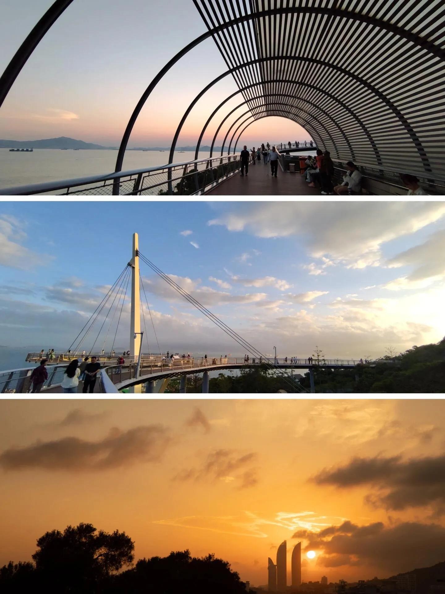 厦门盼归塔和天泉步道 ,位于思明区环岛路林海线,是一个比鼓浪屿更值得去的地方! 这里的山海步道美得令人惊叹 ,沿环岛路而建的空中步道是观赏海边夕阳的绝佳选择。