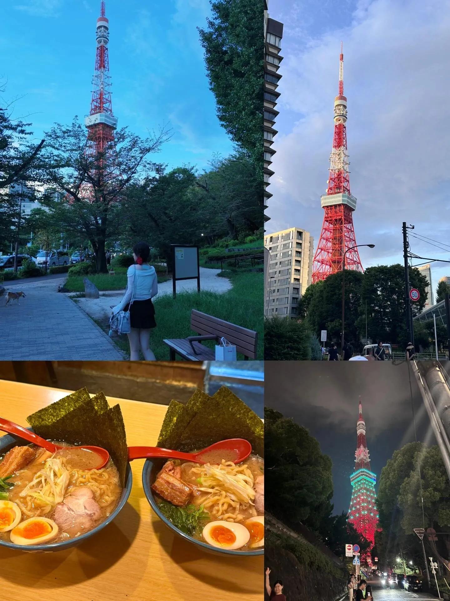 晚上的东京塔是另一个亮点。这里有许多适合拍照的机位,边上的公园也很适合拍摄。值得注意的是,东京塔的亮灯时间会影响其外观,经典的红白配色要在晚上10点后才能看到,而天黑后到10点前是钻石色的灯光效果。