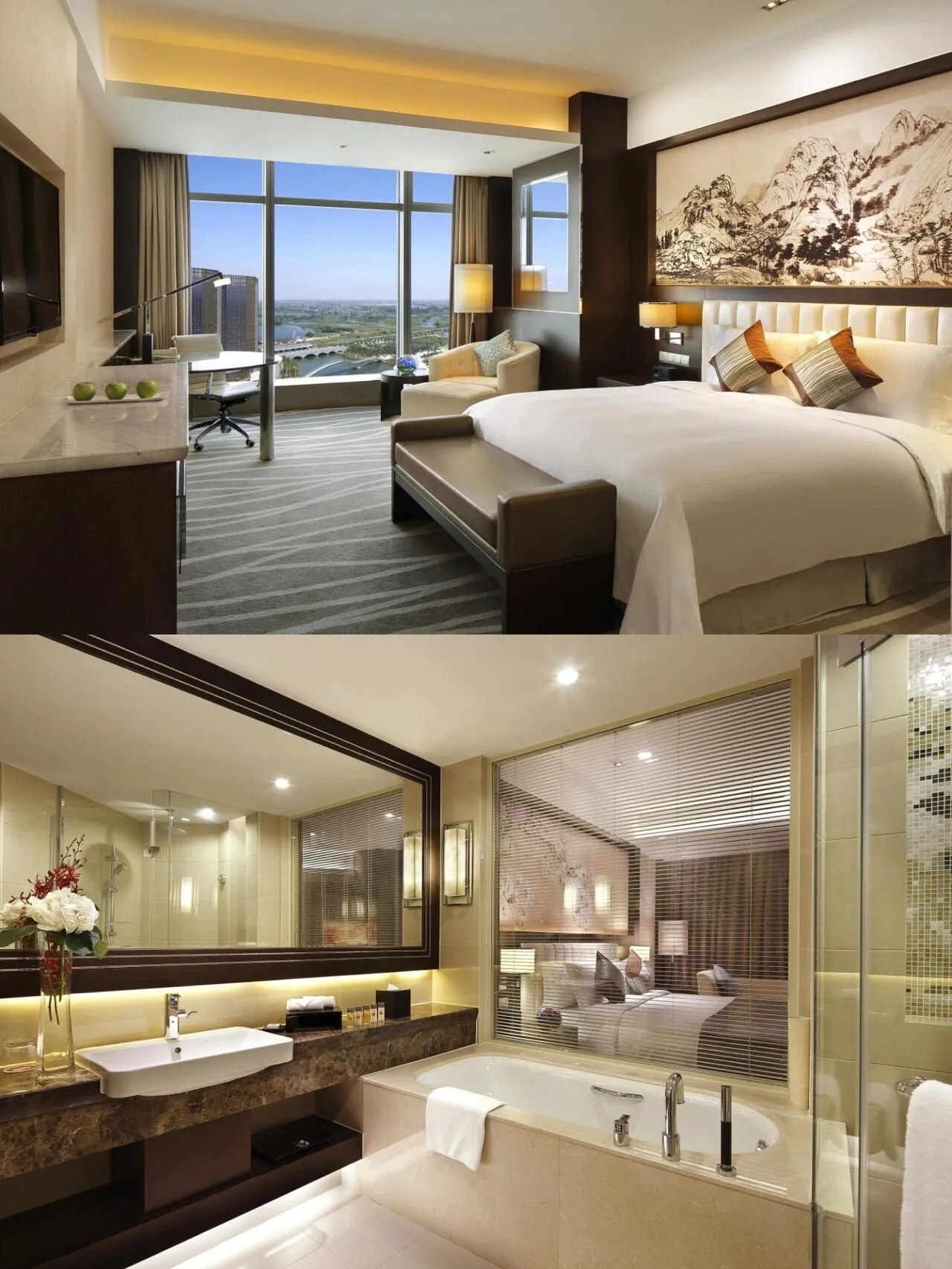 这次我们订的是酒店的暑期欢乐Go套餐,包含了皇冠高级房一晚和柯岩社戏体验票。房间设计摩登高雅,巨大的落地窗让我们将绍兴美景尽收眼底,夜景更是美不胜收。套餐还包含了双人早餐,有很多当地特色小吃,其他食物也应有尽有,十分丰盛。