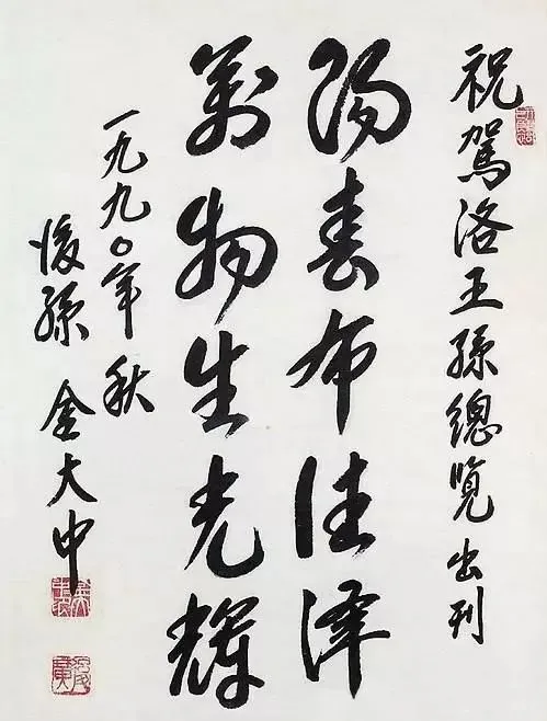 同年秋天,金泳三指示相关部门邀请启功赴韩,与韩国书法泰斗金膺显共同举办了书法联展。