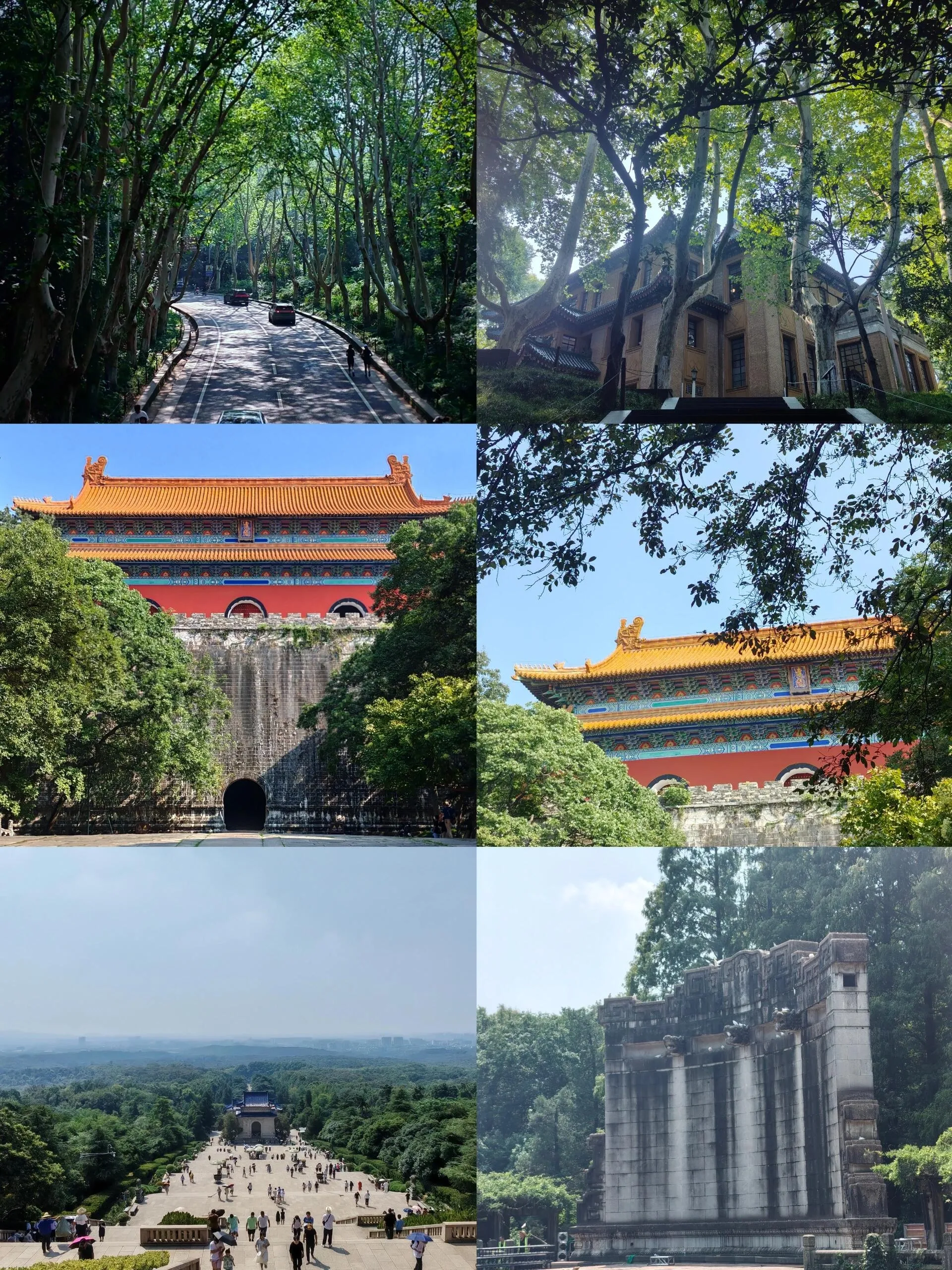 钟山风景区(购买94元/人的套票)。从苜蓿园站出发,沿梧桐大道步行至美龄宫,然后前往明孝陵(5号门进7号门出)。乘坐7号线观光车到中山陵,步行至音乐台。由于时间有限,未能游览灵谷寺,直接乘坐观光车返回苜蓿园站。建议早上7:30开始游玩,全程需要6-8小时。