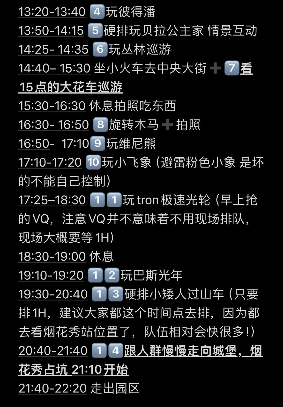 进园后完成第一个预约项目,立即预约下一个。通常在进入项目前会刷卡,可以在排队时预约下一个项目。根据个人兴趣和当时人流情况选择项目,APP会显示每个项目的等待时间和可预约时间。