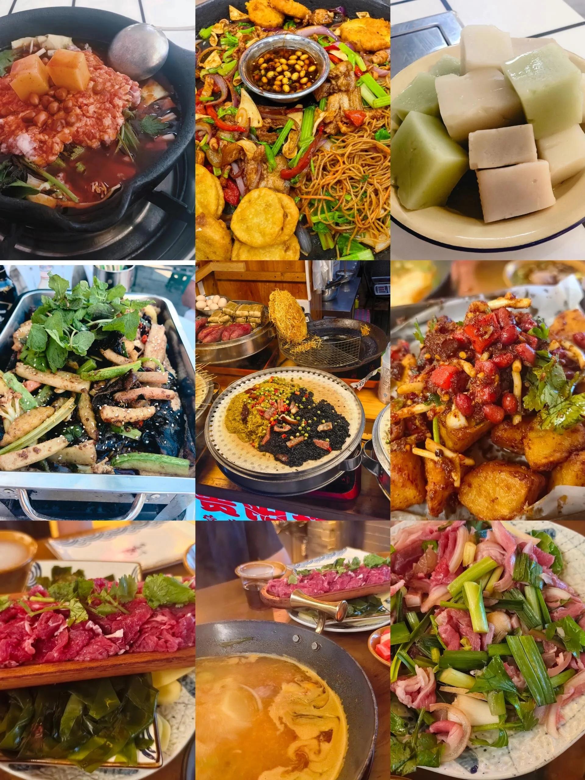 接着是一烙锅的烙锅。推荐尝试板筋肉、五花肉、黄喉、洋芋粑和包浆小豆腐。不过吃到后面可能会有点腻,可以再点些新鲜生菜来平衡。