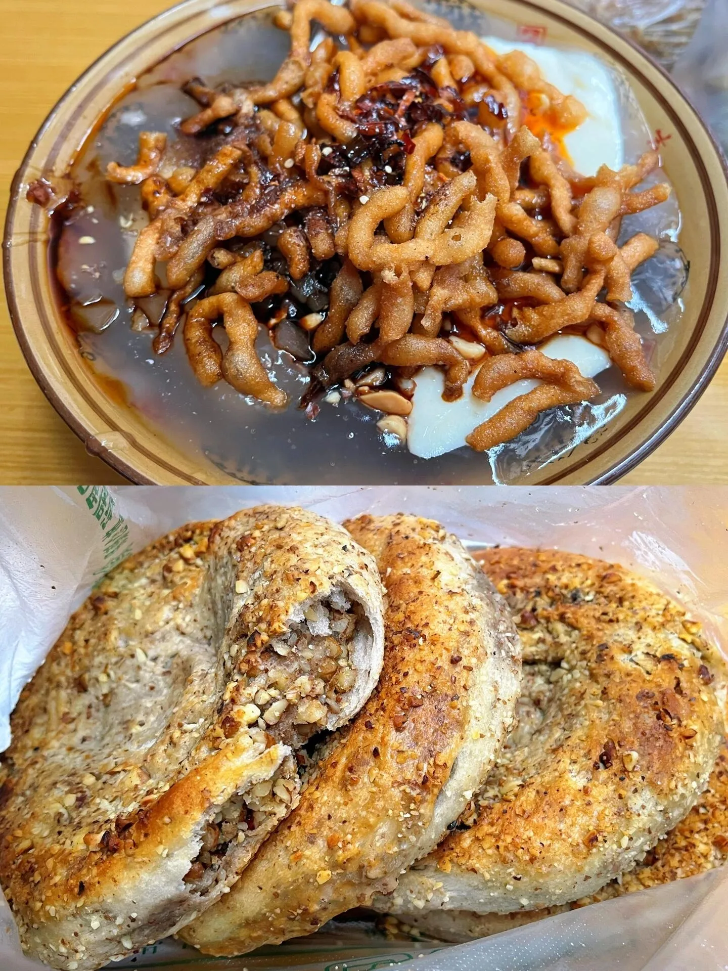 位于一个市场内,建议早点去。老板夫妻很朴实。饼里全是核桃仁,特别香,凉着吃更香且不糊嘴。性价比高,仅5元一个。