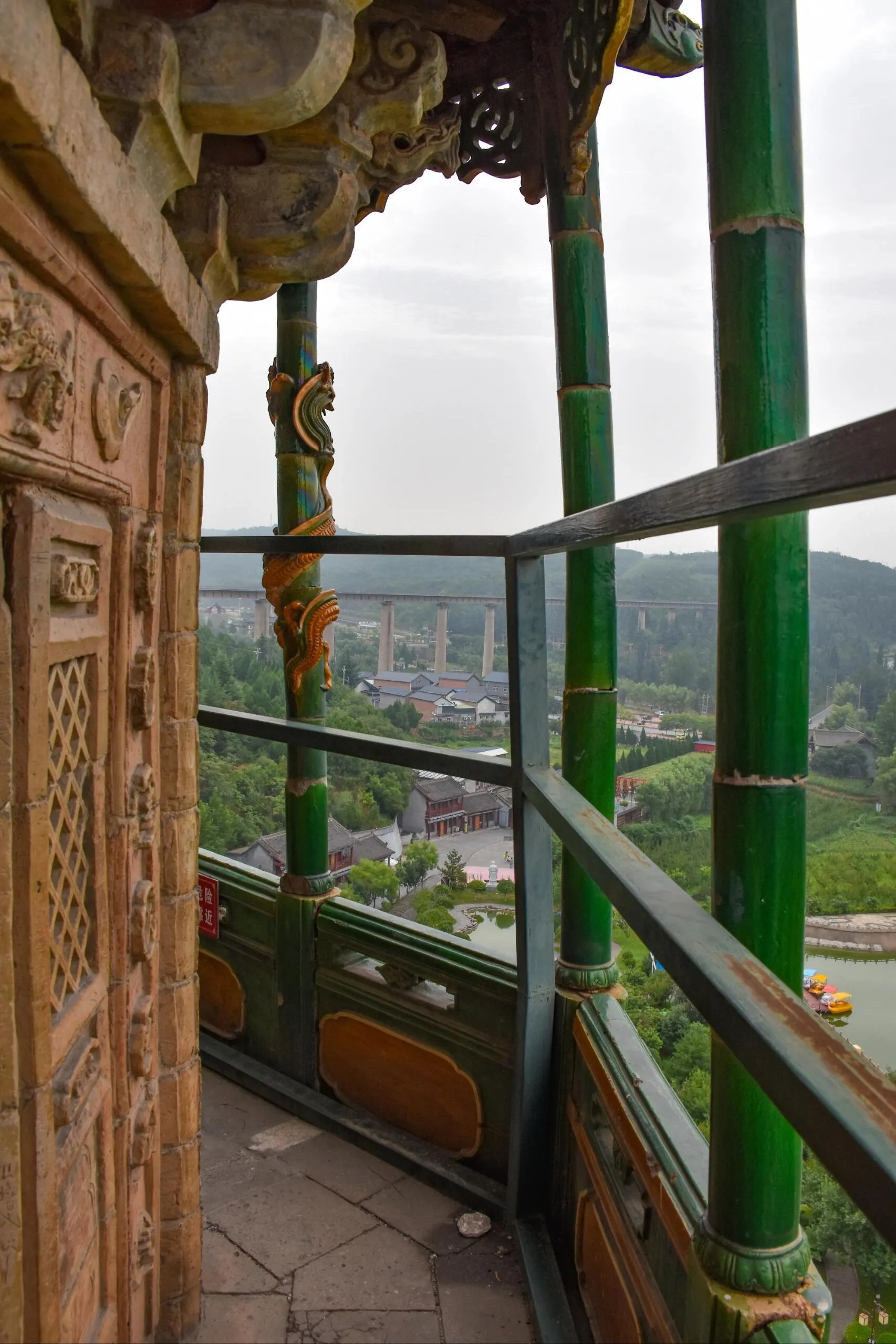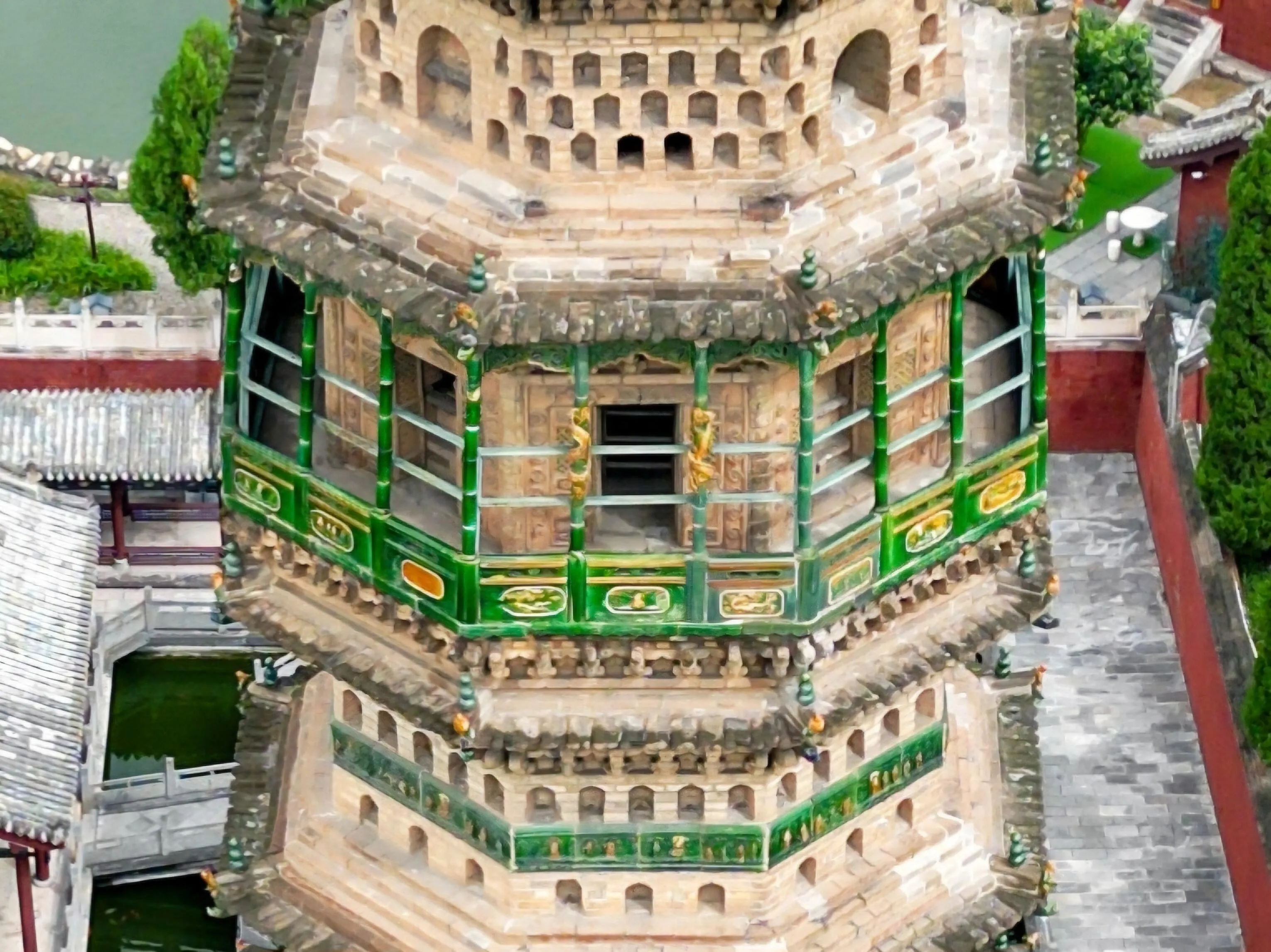 塔的第十层是一个悬空环廊,可以出塔绕塔身一圈。这一层有琉璃砖雕、假窗和佛龛等精美装饰。下塔时会有些困难,因为通道狭窄,而且台阶已经被踩得很滑。建议大家下塔时要小心谨慎,注意支撑好双腿,量力而行。
