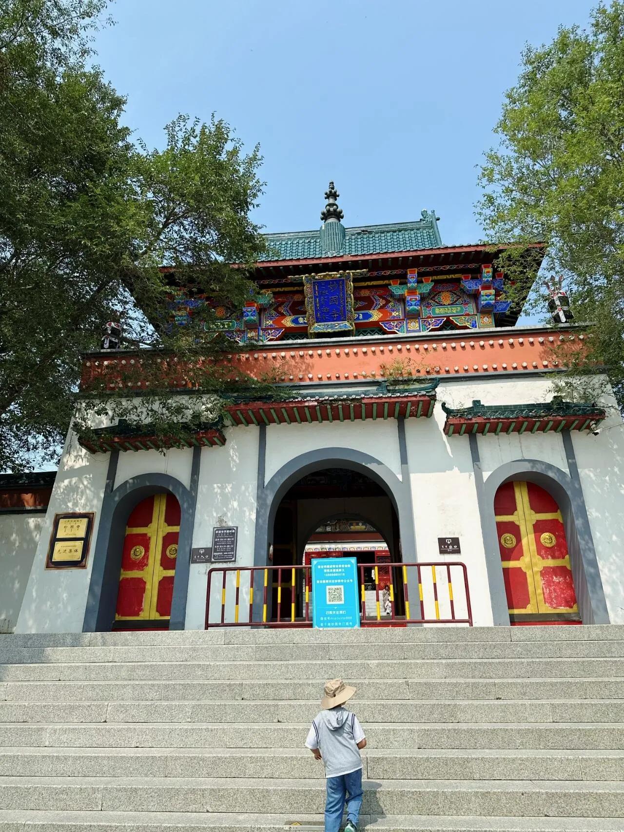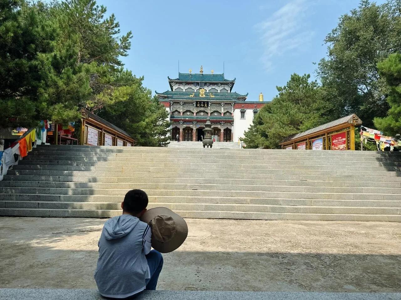 第一站是妙因寺,这是查干湖畔的一座藏传佛教寺庙,建筑风格独特,充满了神秘的宗教氛围。门票25元,1.2米以下儿童免费。寺庙内的建筑非常精美,可以在里面供灯。整个寺院在蓝天白云的映衬下格外壮观。