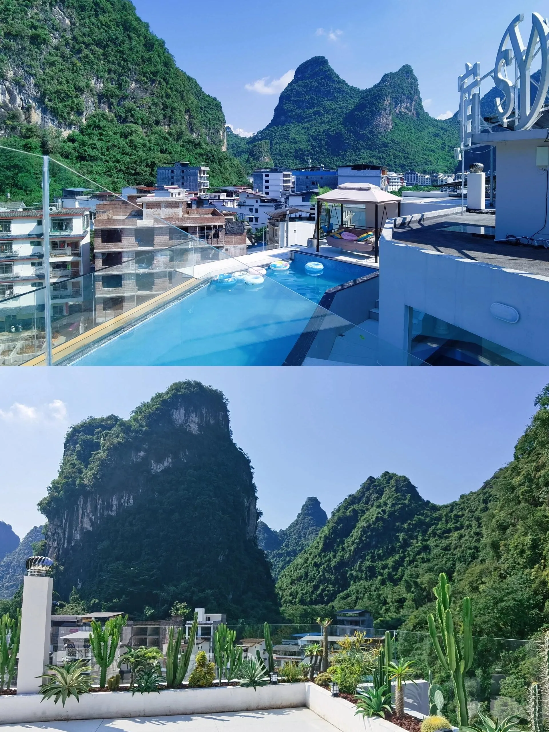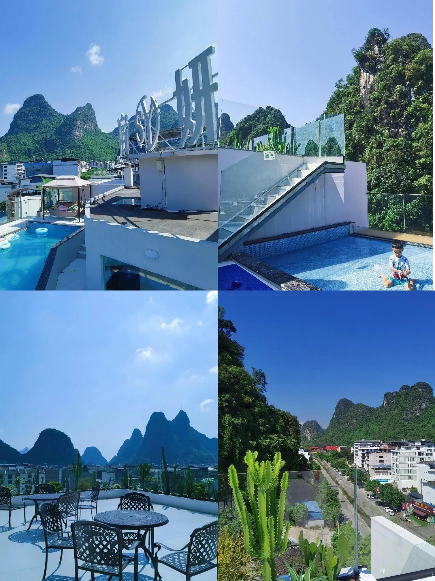 除了游泳池, 楼顶花园同样令人印象深刻 。各种绿植环绕,为游客提供了一个欣赏阳朔自然山景的绝佳位置。