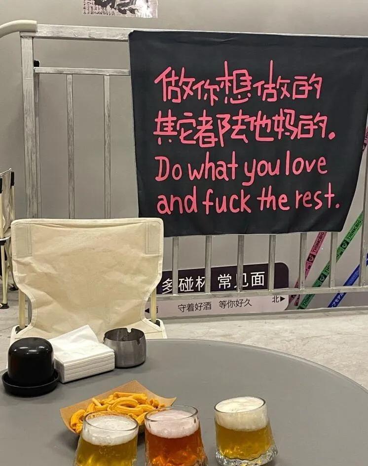 坐落于南京路上的1008酒馆自带小院,格调独特。酒吧老板身高接近一米九,给人以亲和力。这里同样有一只大金毛作为酒吧的招牌角色,店内还贴心地准备了以大金毛为主题的周边纪念品。虽然空间不大,但设有独立的观影室,为顾客提供了别样的体验。
