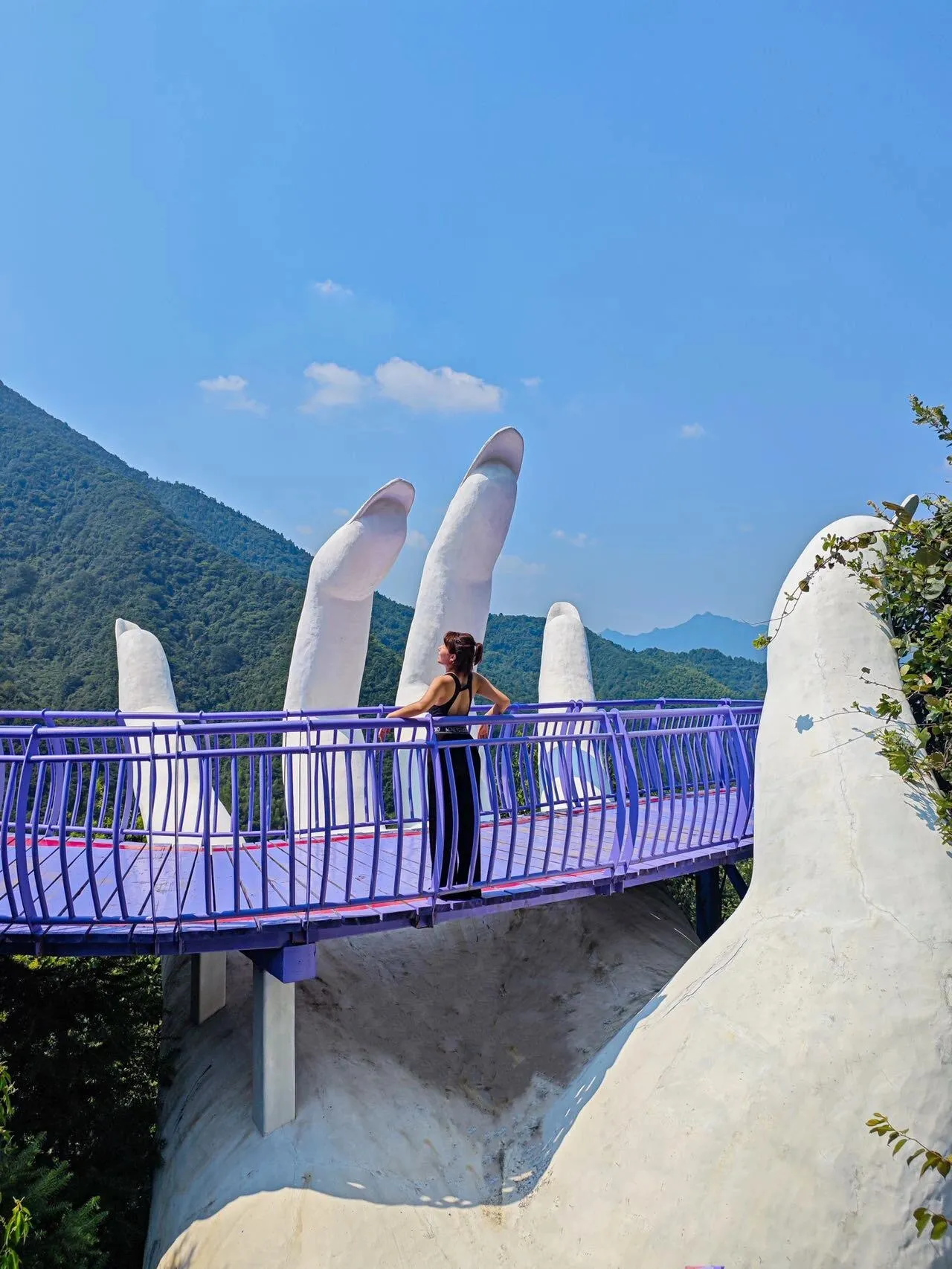 景区还有许多独特的景点,如 紫菱纤手、天空之境等 。紫菱纤手是一双巨大的玉手托起的紫色栈道,让人仿佛被捧在手心,在森林中感受紫色浪漫。天空之境位于紫金花悬崖眺台的顶楼,有一面巨大的镜子,可以与蓝天白云背对背拥抱。