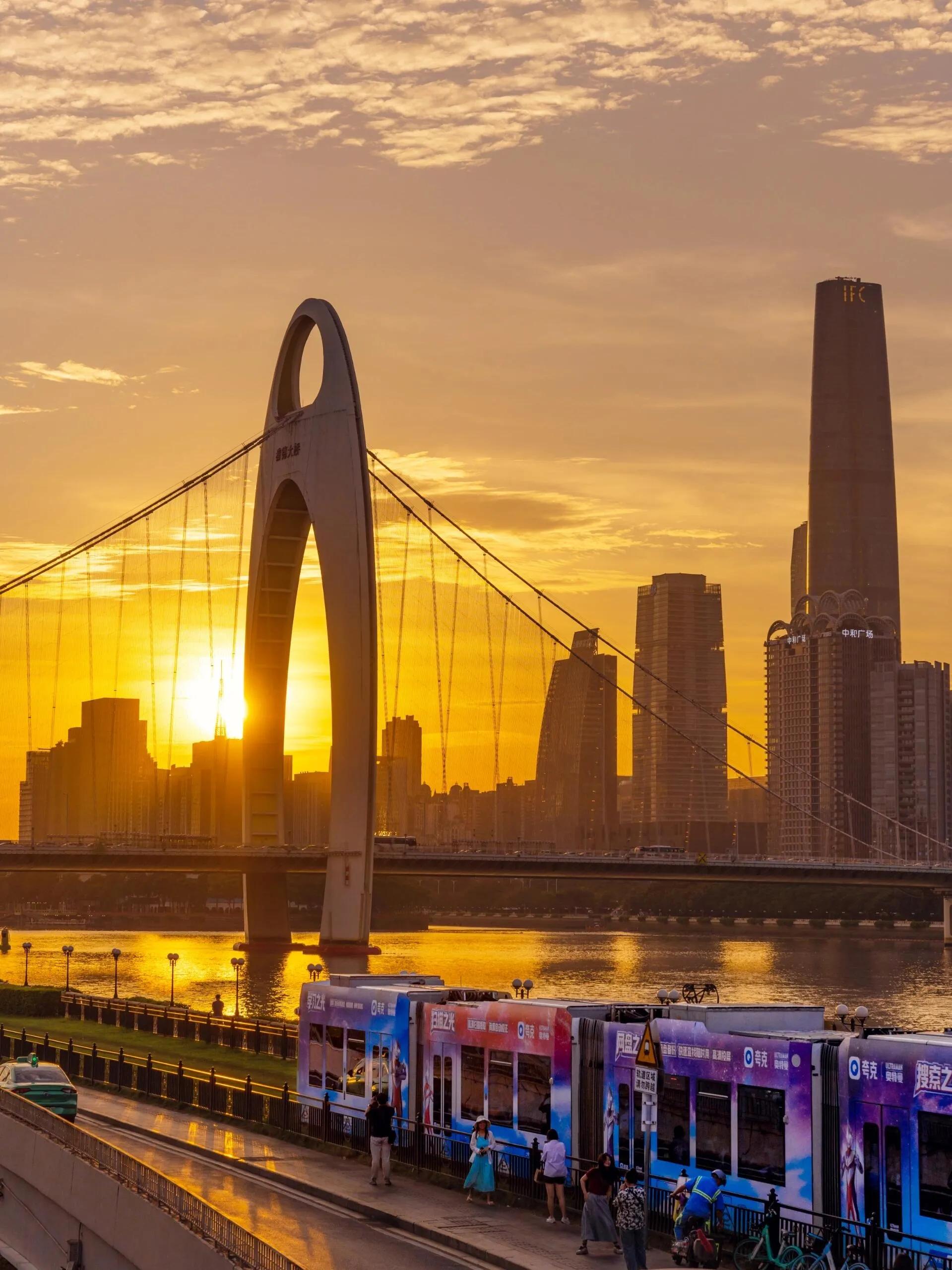 观赏日落的最佳路段是琶醍站到猎德大桥南站,建议在18:20后前往,避开阳光最强烈的时段。