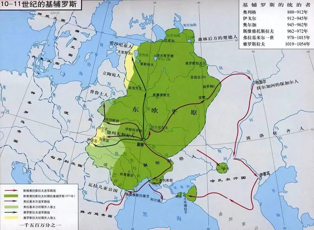 基辅罗斯王国以东斯拉夫人为主,早期征战连连获胜。
